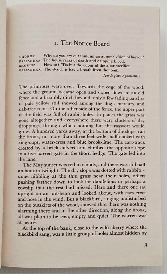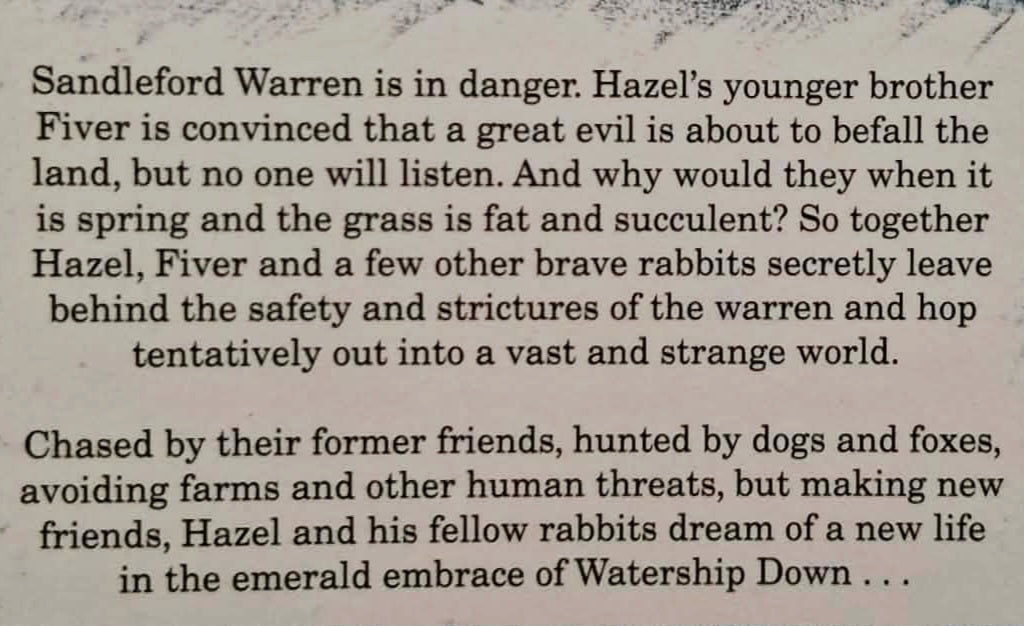 Led by a stout-hearted pair of friends, they journey forth from their native Sandleford Warren through the harrowing trials posed by predators and adversaries, to a mysterious promised land and a more perfect society.