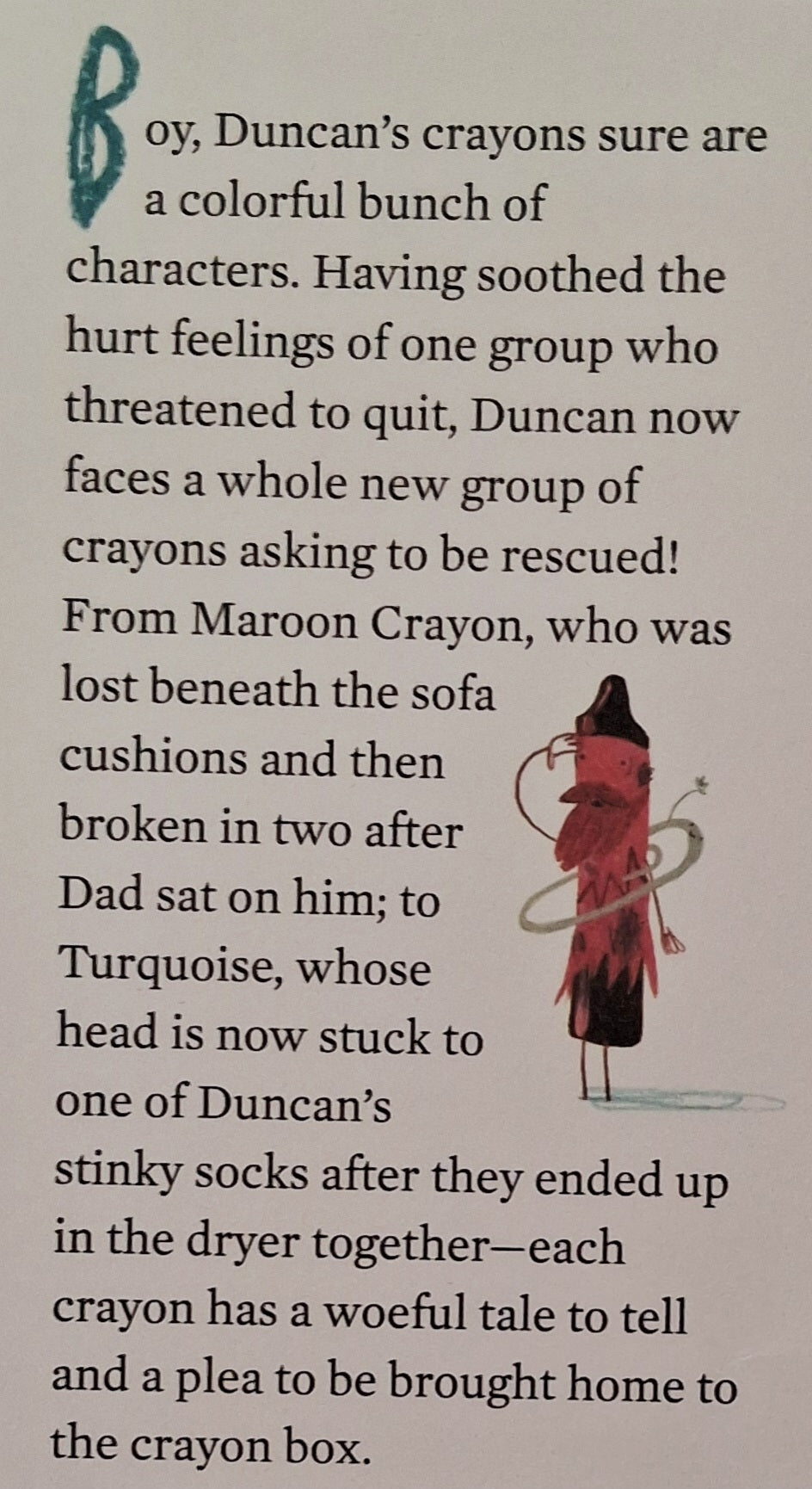 Duncan's crayons sure are a colorful bunch of characters, and they are back with yet another wild range of colourful demands. Having soothed the hurt feelings of one group who threatened to quit, Duncan now faces a whole new group of crayons asking to be rescued!