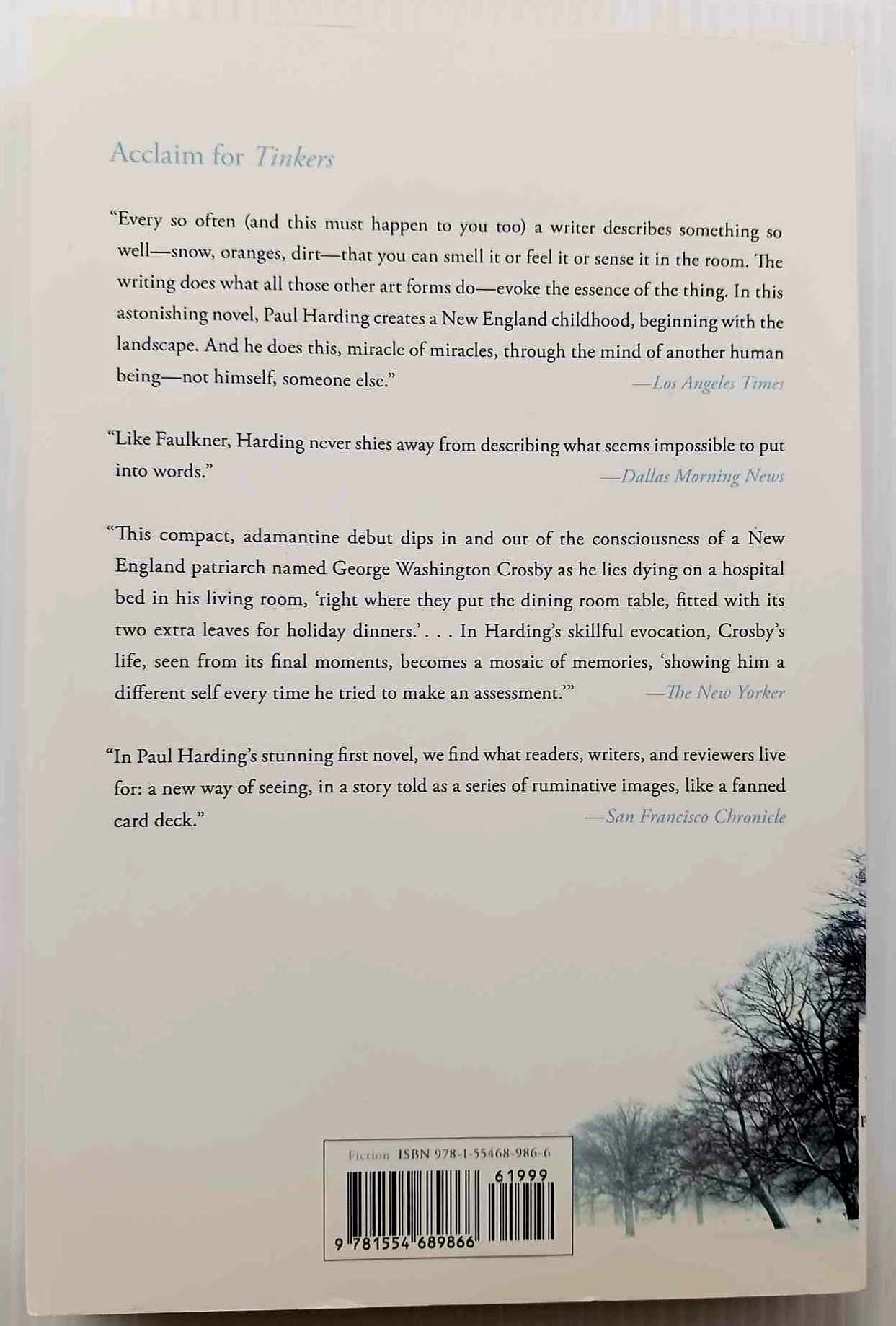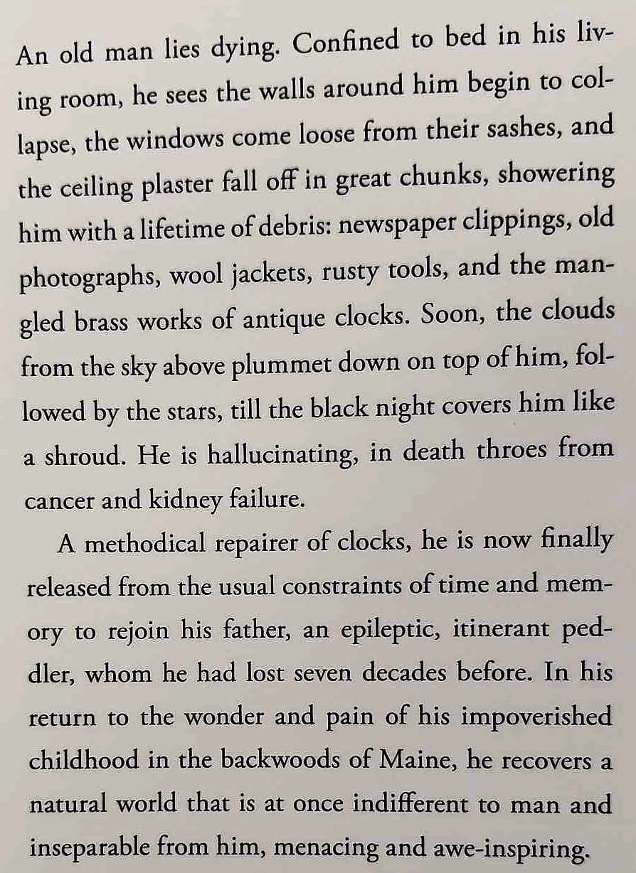 At once heartbreaking and life affirming, Tinkers is an elegiac meditation on love, loss, the fierce beauty of nature, and the legacy of consciousness and the porousness of identity from one generation to the next.