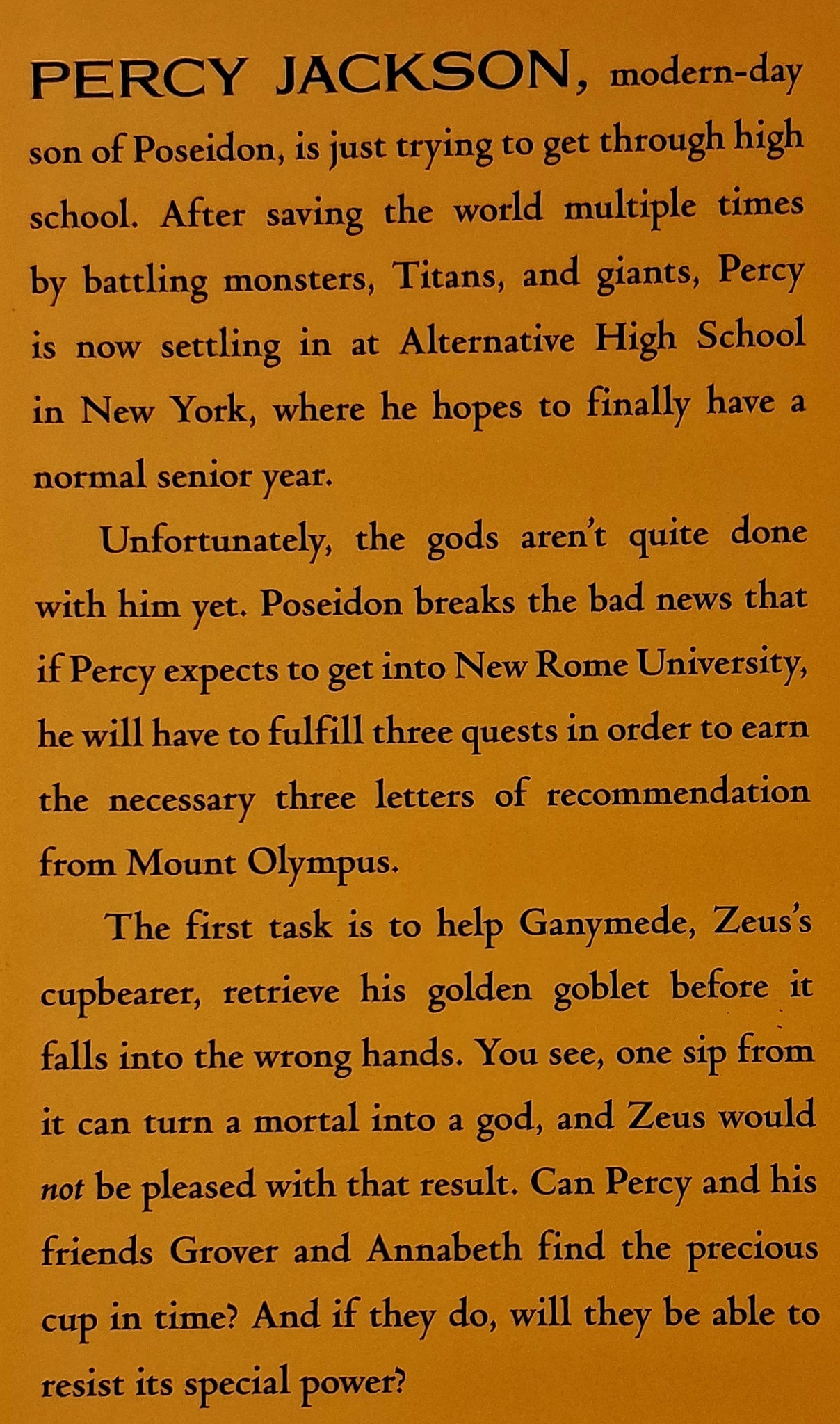 Percy Jackson, the modern-day son of Poseidon, is just trying to get through high school. After saving the world multiple times by battling monsters, titans, and giants, Percy is now settling in at Alternative High School in New York, where he hopes to finally have a normal senior year. Unfortunately, the gods aren’t quite done with him yet . . .