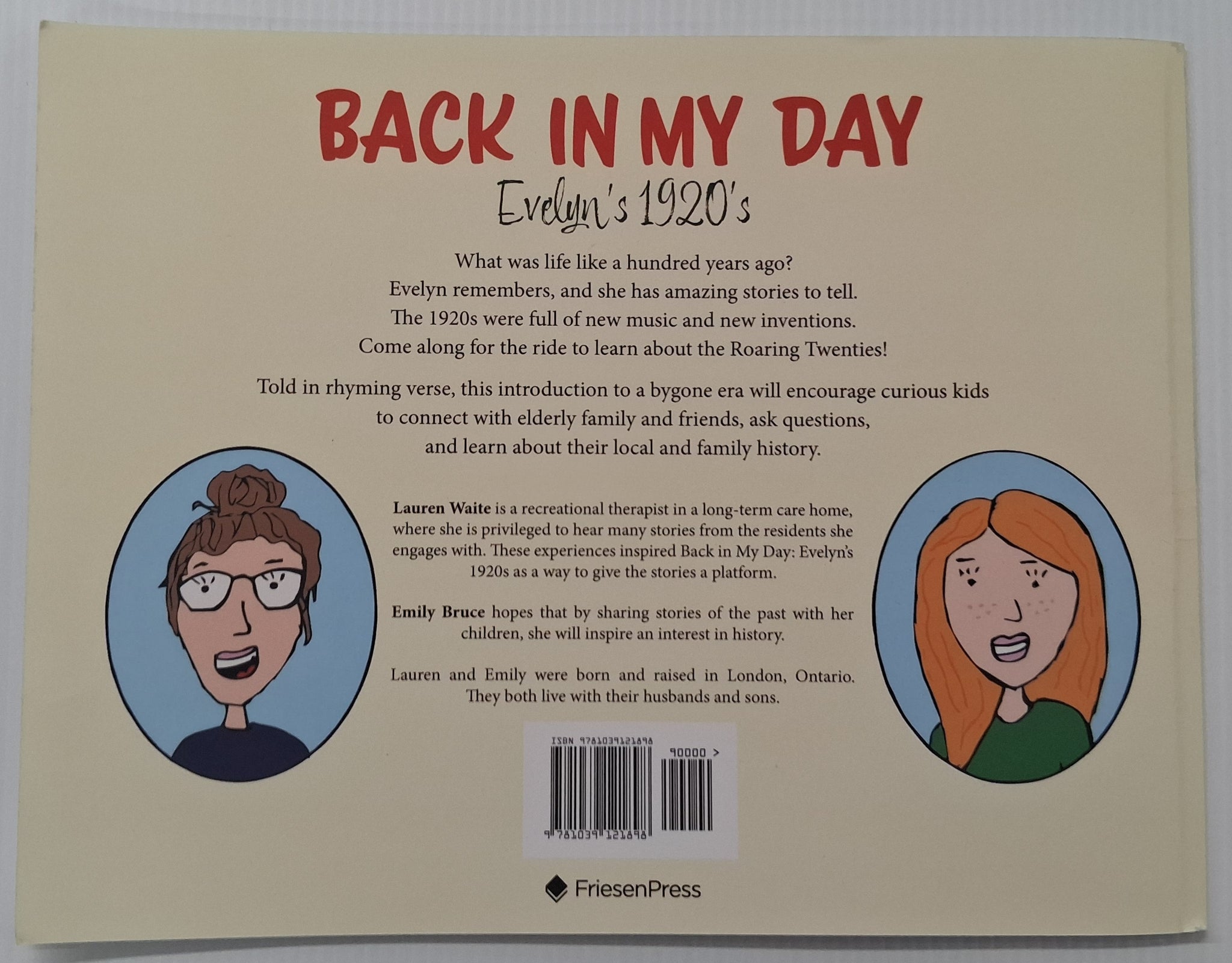 Told in rhyming verse, Back In My Day introduces curious young readers to a bygone era and will encourage them to connect with elderly family and friends, ask questions, and learn about their local and family history.