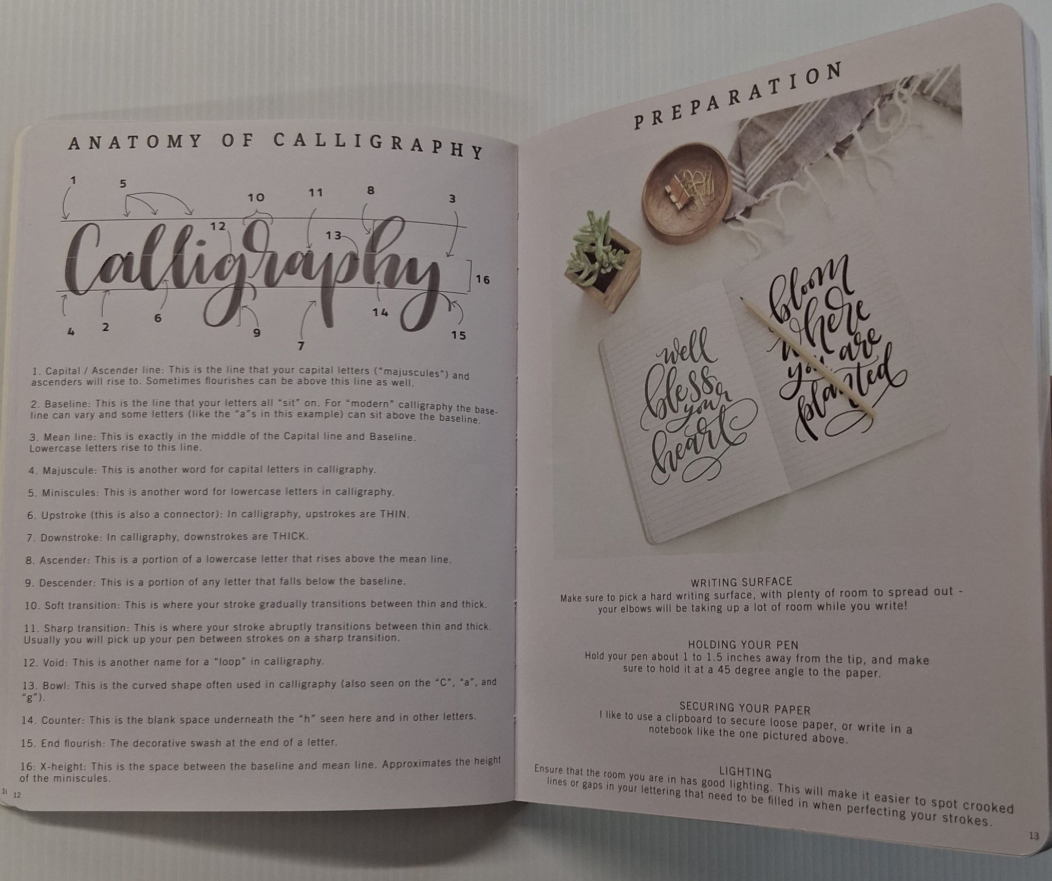 Learn to letter and create beautiful designs with Calligraphy Made Easy, a premium beginner's guide and workbook for hand-lettering (and the many modern styles of calligraphy) where every page is filled with tips, tricks, encouragement, and practice space to kickstart the creative instinct.