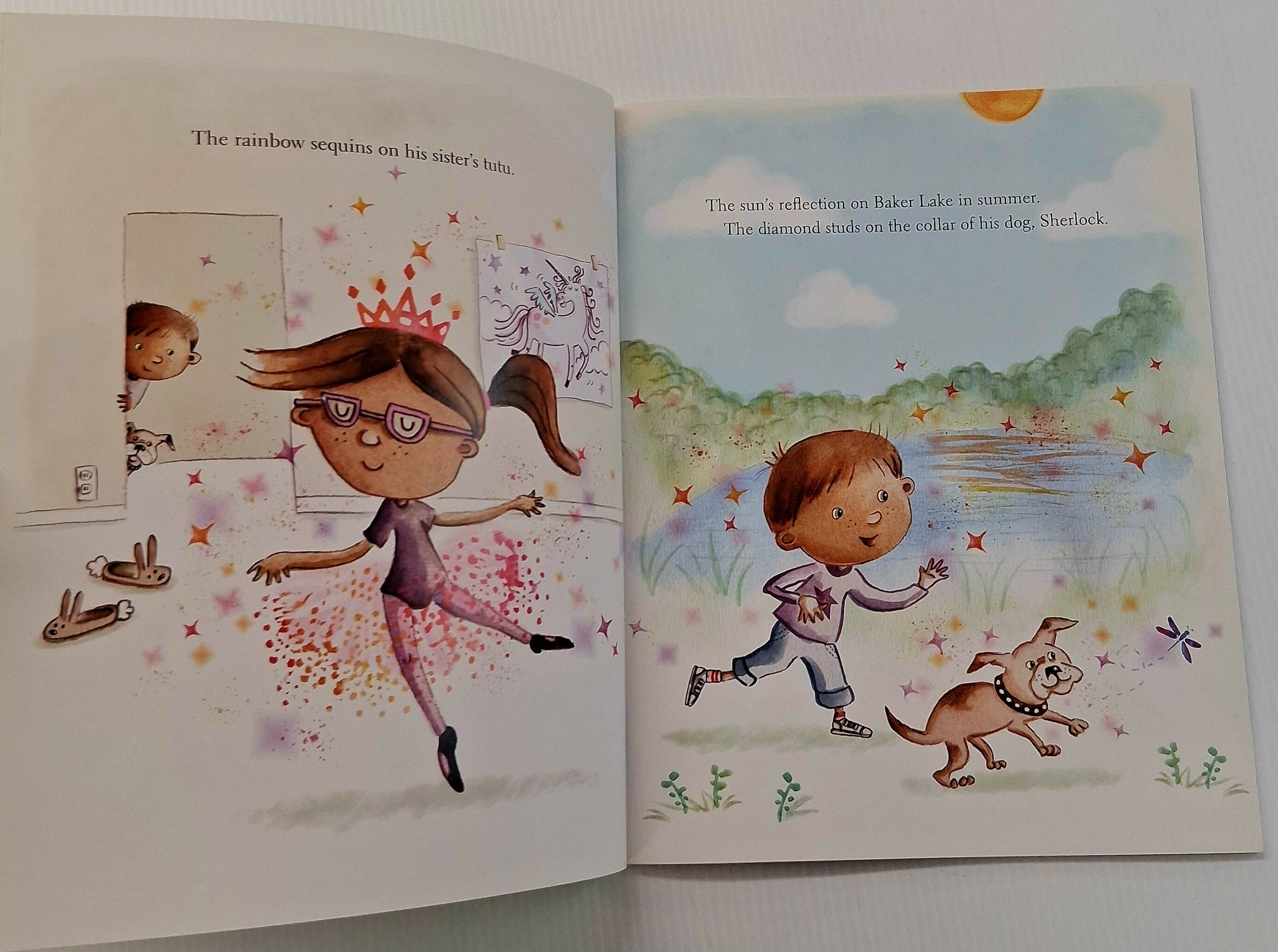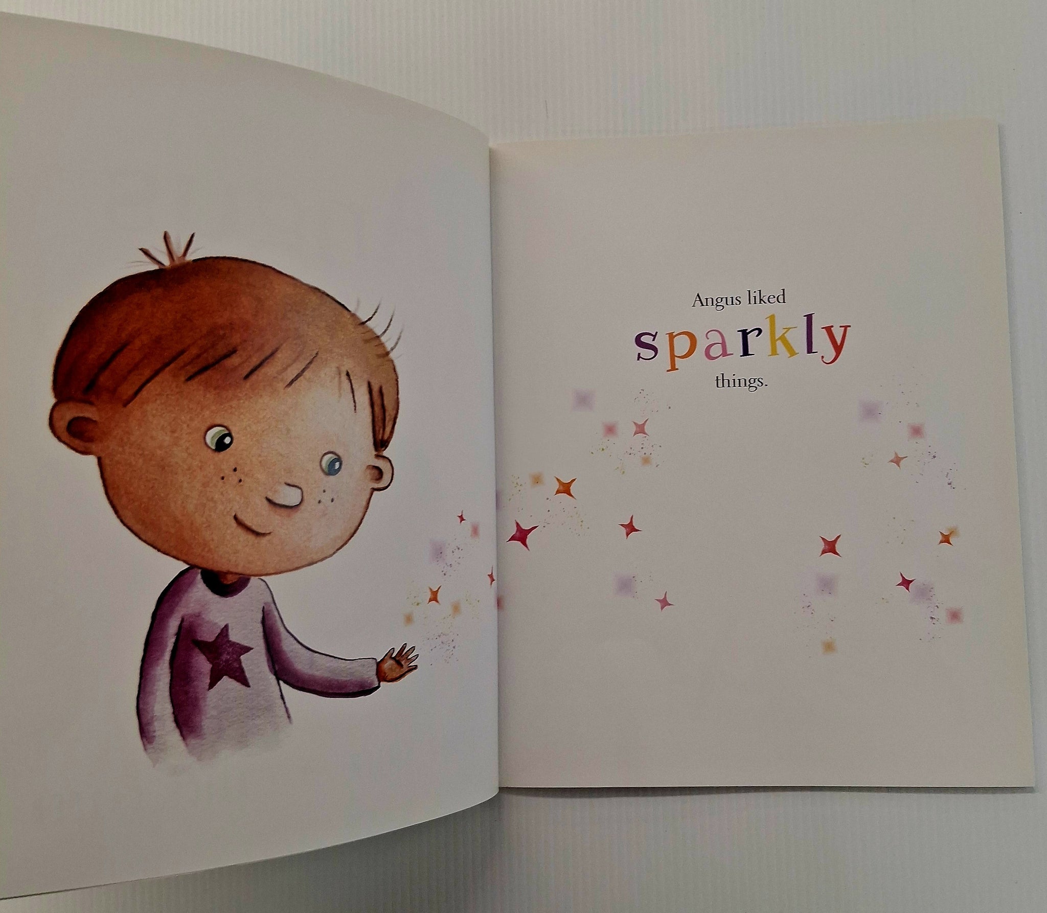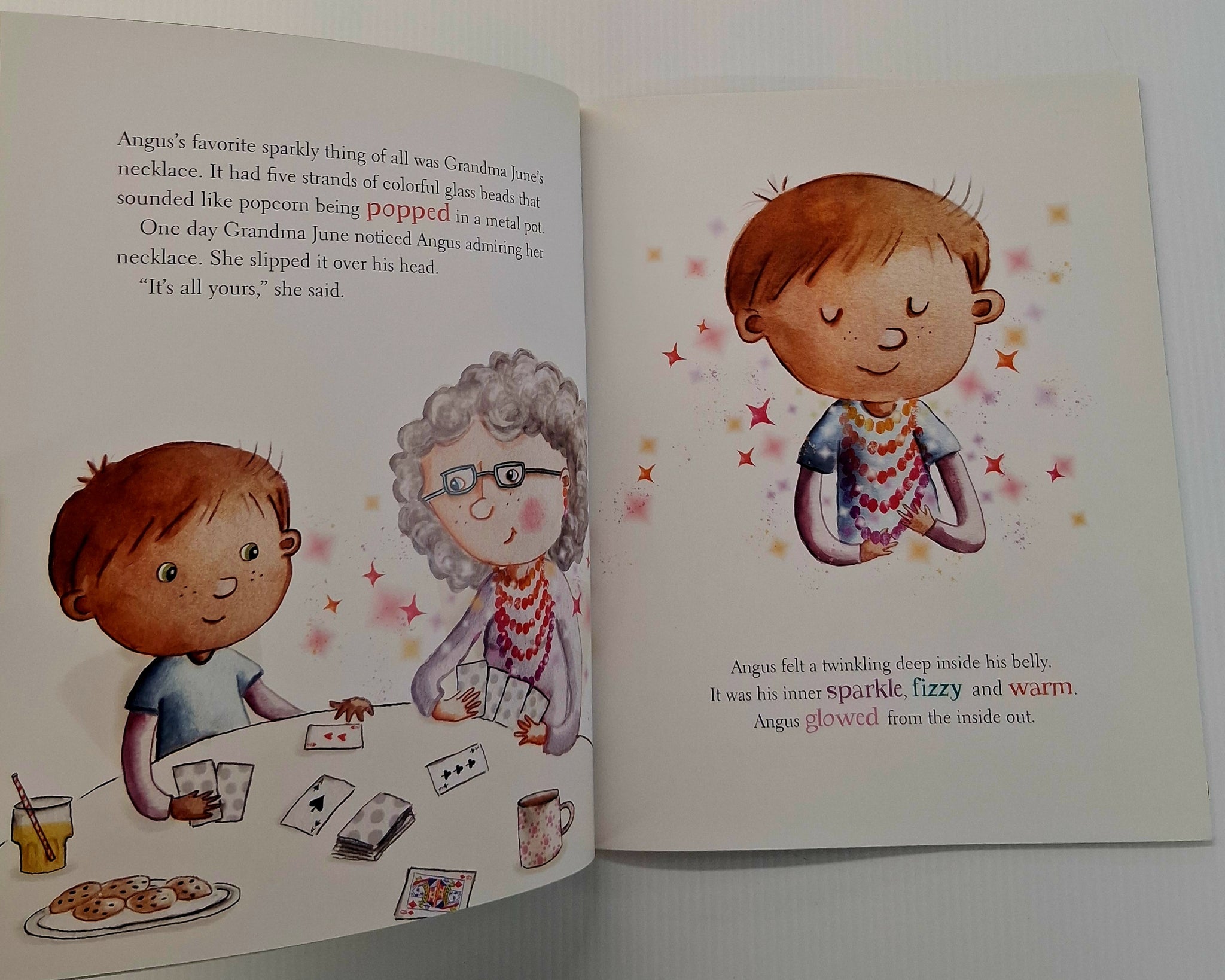 Angus loves sparkly things, so much so that he can hear them. To him, shiny objects not only look beautiful; they also crackle, buzz and go whiz-bang-POP! His unique ability is lost, however, when Angus wears his grandma's beaded necklace to school, and his classmates tease him for his atypical choice . . .