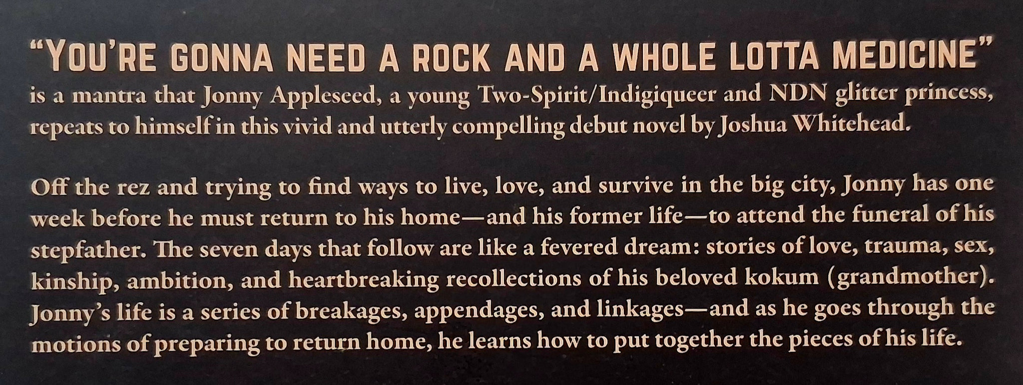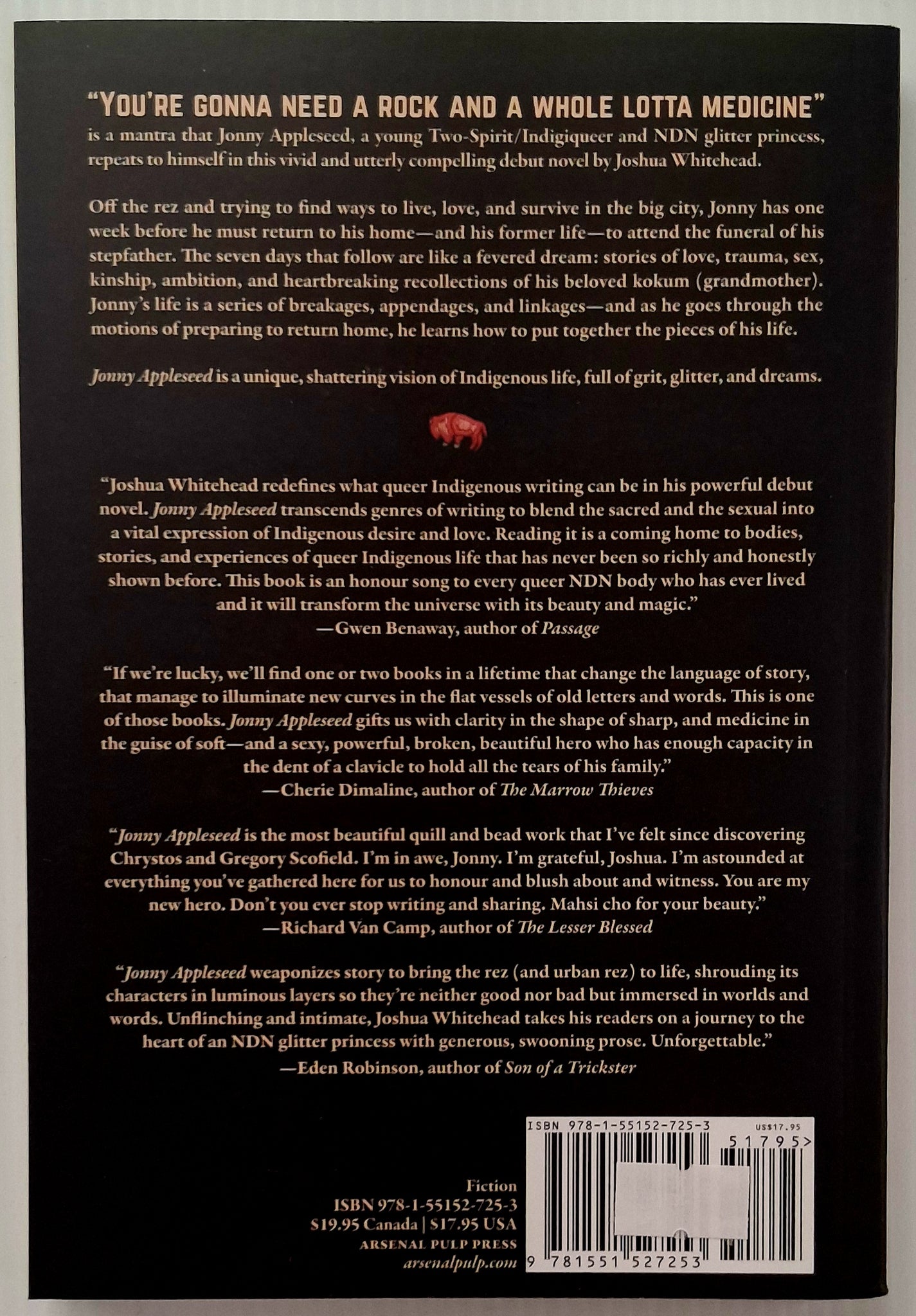 A vivid and utterly compelling novel, Jonny Appleseed projects a unique and shattering vision of Indigenous life, full of grit, glitter, and dreams.