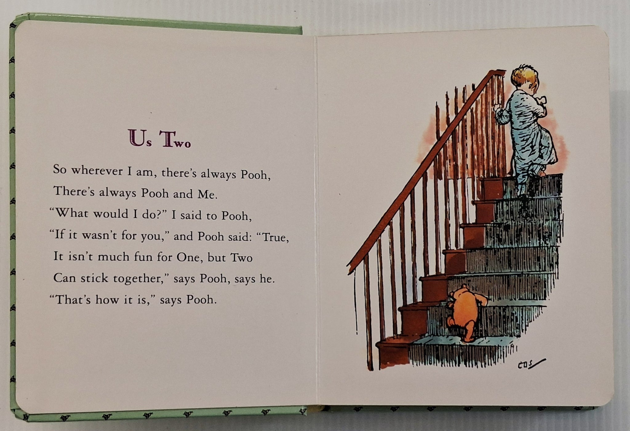 Generations of children have grown up reading and rereading the verses, hums, and rhymes from  A. A. Milne's Winnie-the-Pooh storybooks and poetry volumes.  My First Winnie-the-Pooh gathers ten of these delightful verses (all carefully chosen for the very youngest of fans), beautifully accompanied by Ernest H. Shepard's beloved drawings in full color.