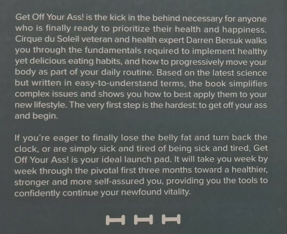 Based on the latest science but written in easy-to-understand terms, Get Off Your Ass! simplifies complex issues and shows how to best apply them to a new lifestyle breaking the process down week-by-week through the first three months and providing the tools needed to confidently continue with this newfound vitality.