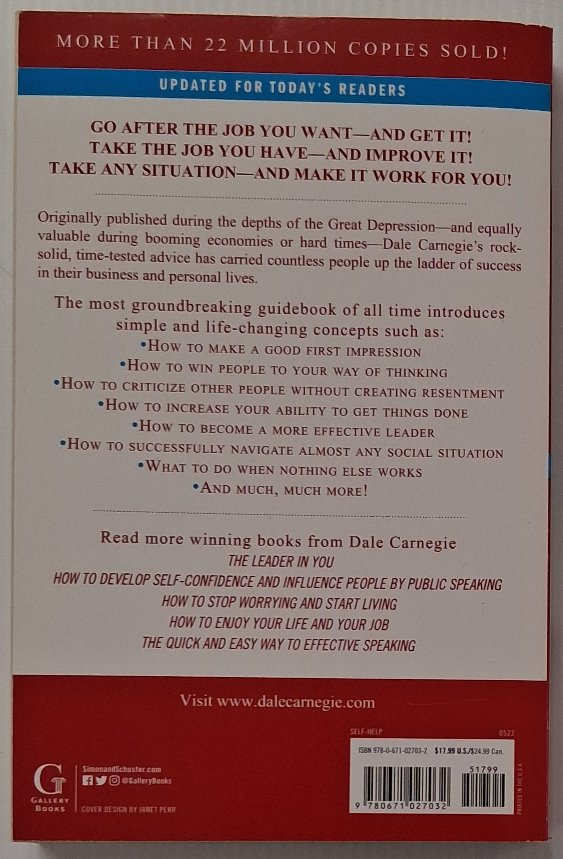 First published in 1936, How to Win Friends and Influence People is as relevant today as ever before; Dale Carnegie's principles endure, and are proven to help readers achieve their maximum potential in the complex and competitive modern age.