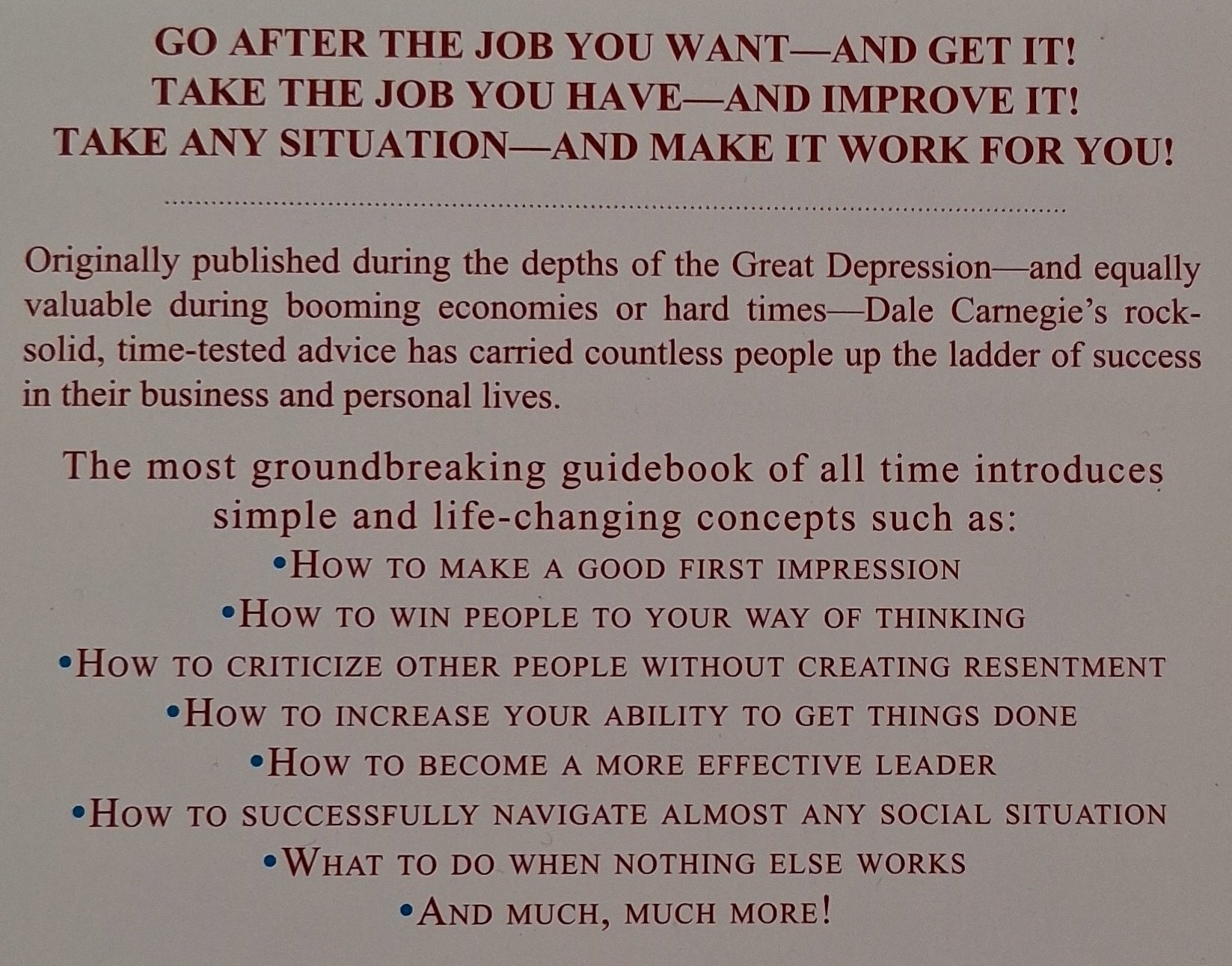 For almost one hundred years the rock-solid, time-tested advice presented in How to Win Friends and Influence People has carried thousands of now famous people up the ladder of success in their business and personal lives.