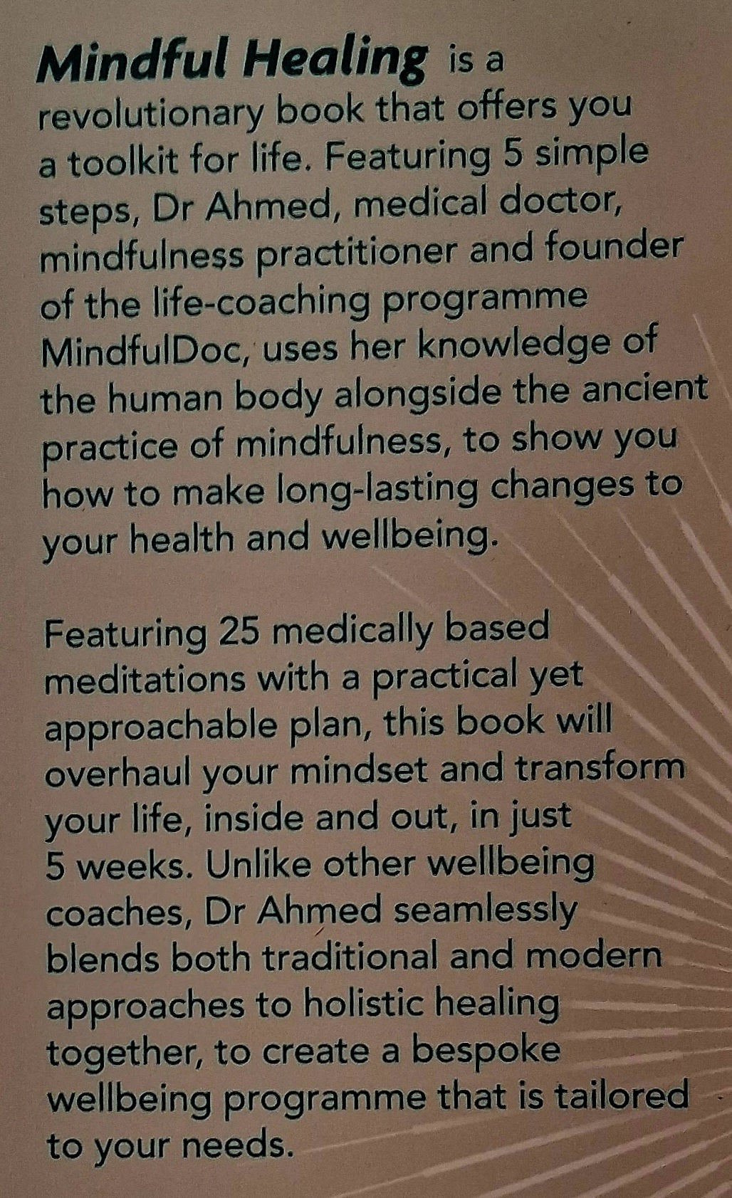 A definitive guide to mindfulness that reveals the science behind it, written by a medical doctor and mindfulness practitioner, Mindful Healing is a specially designed well-being program that explains how by simply focusing on one's mind, the rest (whatever that is) will follow, and is intended to make lasting, impactful changes to its practitioners outlook
