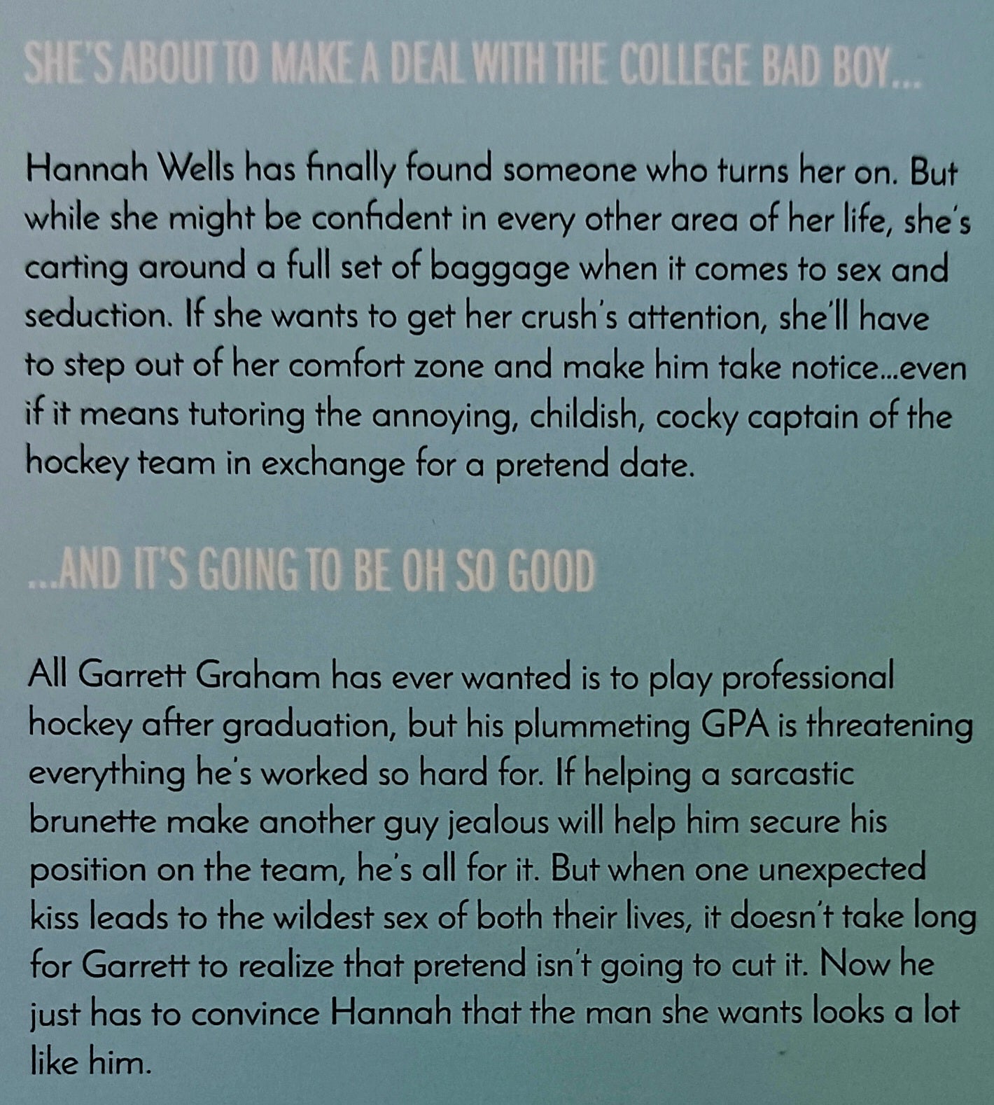 Hannah Wells is a junior at Briar College studying music, and she's about to make a deal with the college bad boy . . .