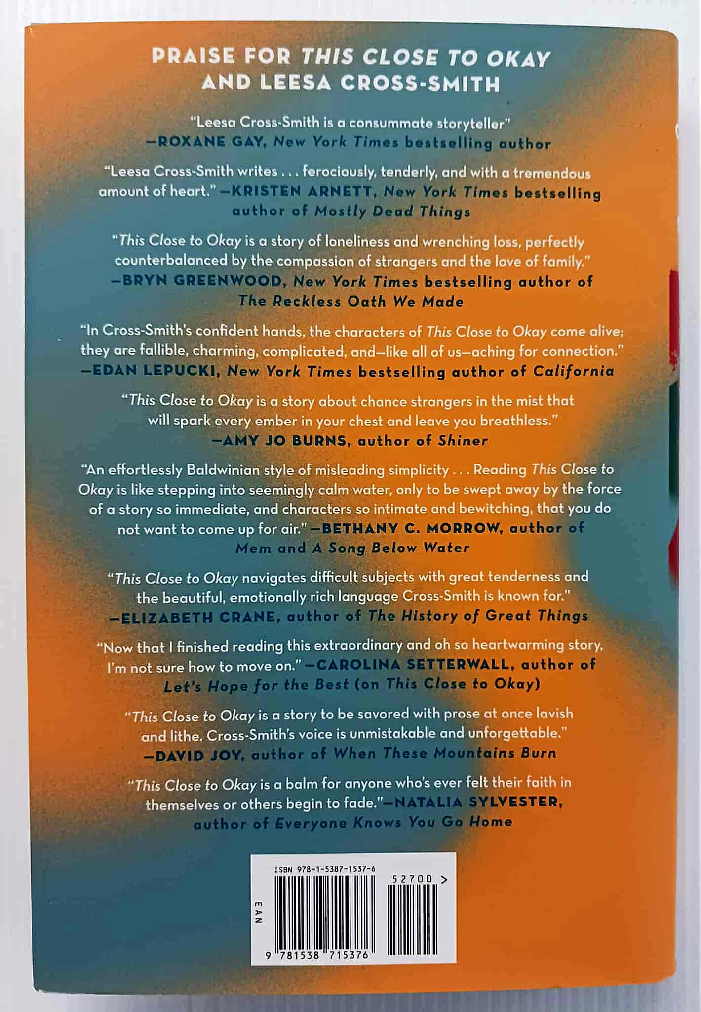 A powerful, vibrant novel about the life-changing weekend shared between two strangers told from alternates perspectives, This Close to Okay is an uplifting, cathartic story about chance encounters, hope found in unlikely moments, and the subtle magic of human connection.
