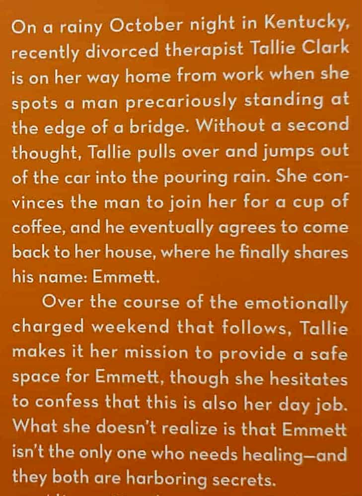 Enter a life-changing weekend shared between two strangers who are brought together by wild chance at the moment they needed each other most: a therapist and the man she prevents from ending his life . . .