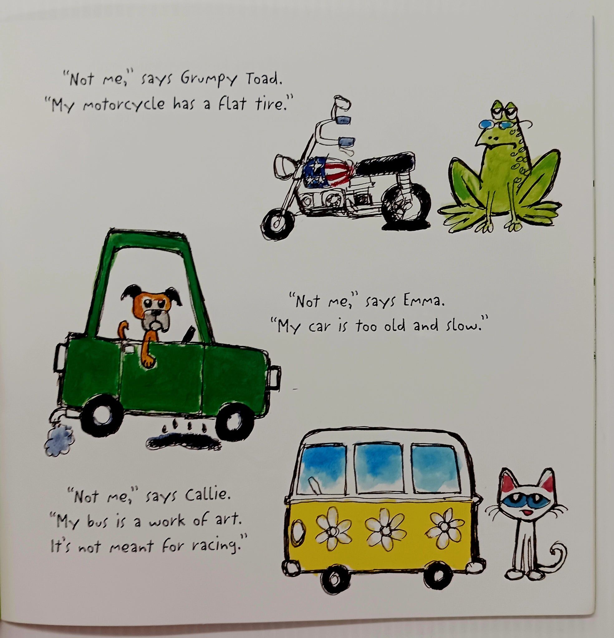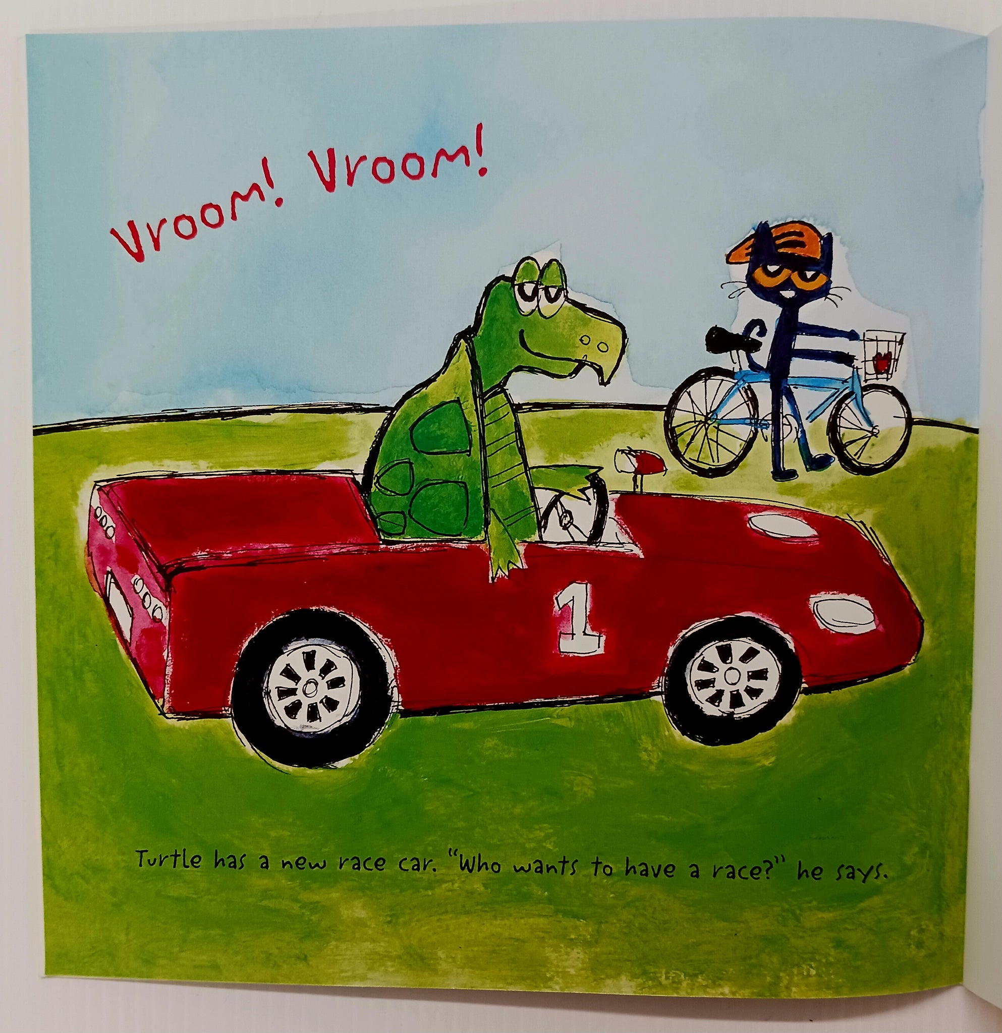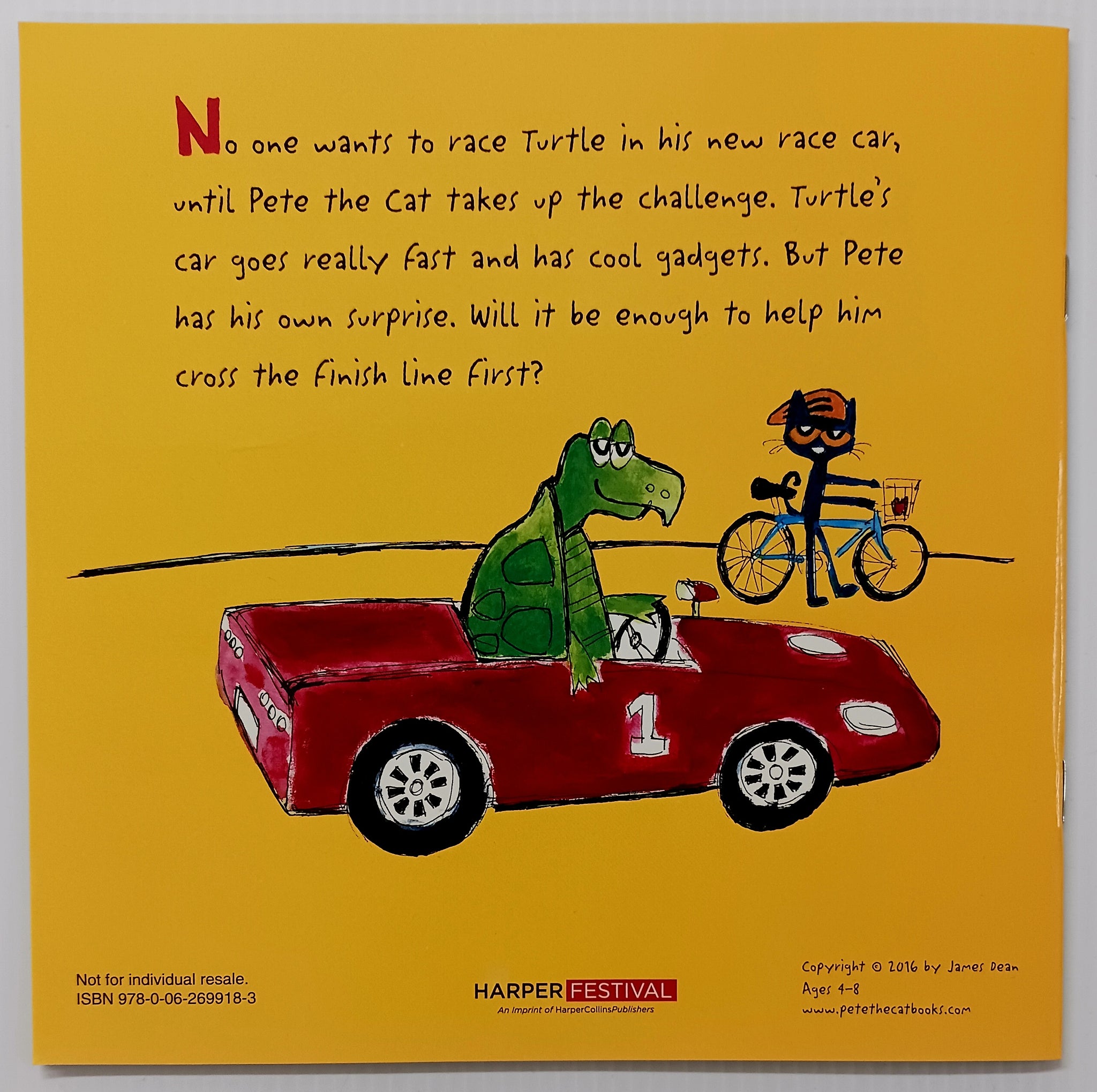 No one wants to race Turtle in his new race car, until Pete the Cat takes up the challenge. Turtles car goes really fast and has cool gadgets, but Pete has his own surprise. Will it be enough to help him cross the finish line . . . ?