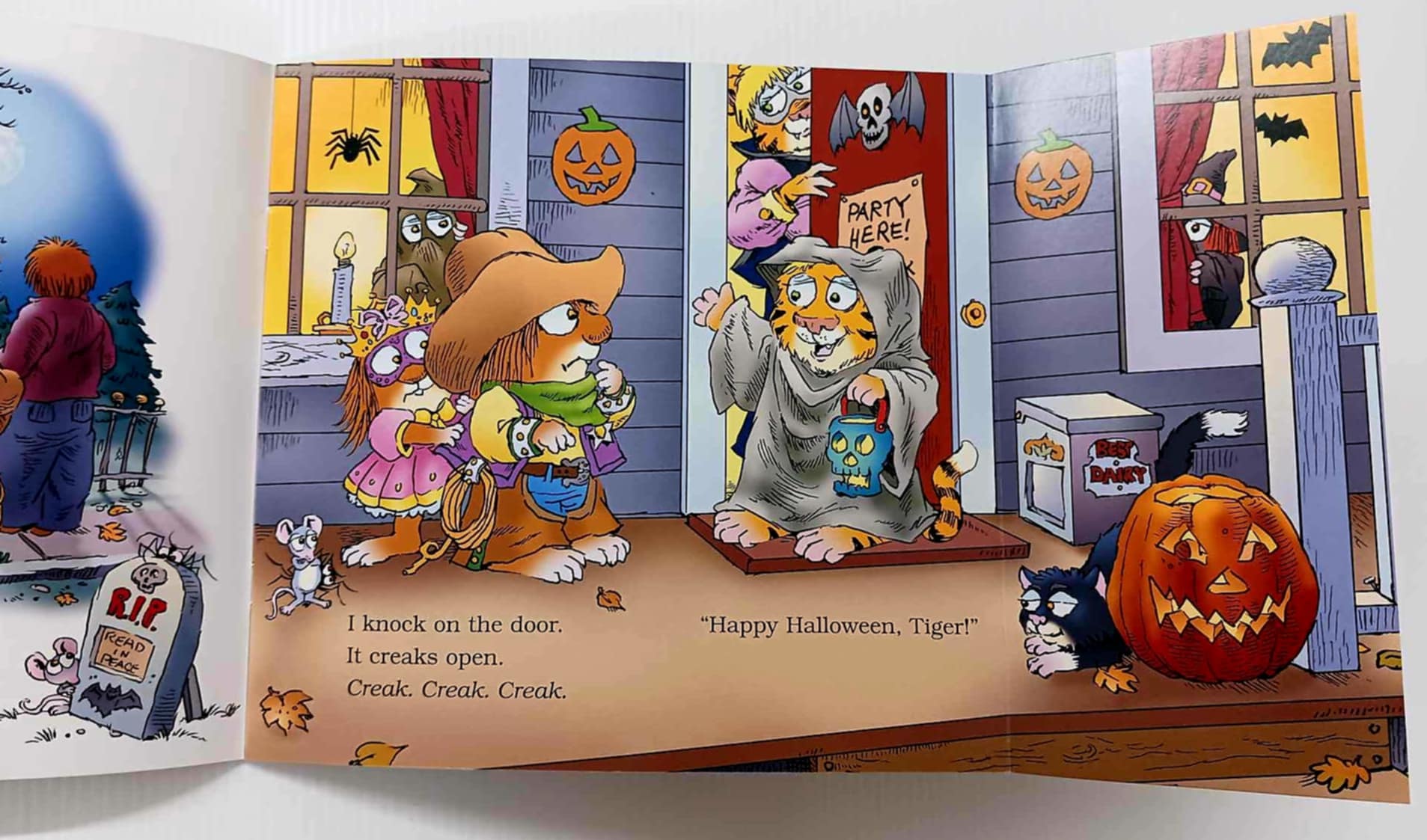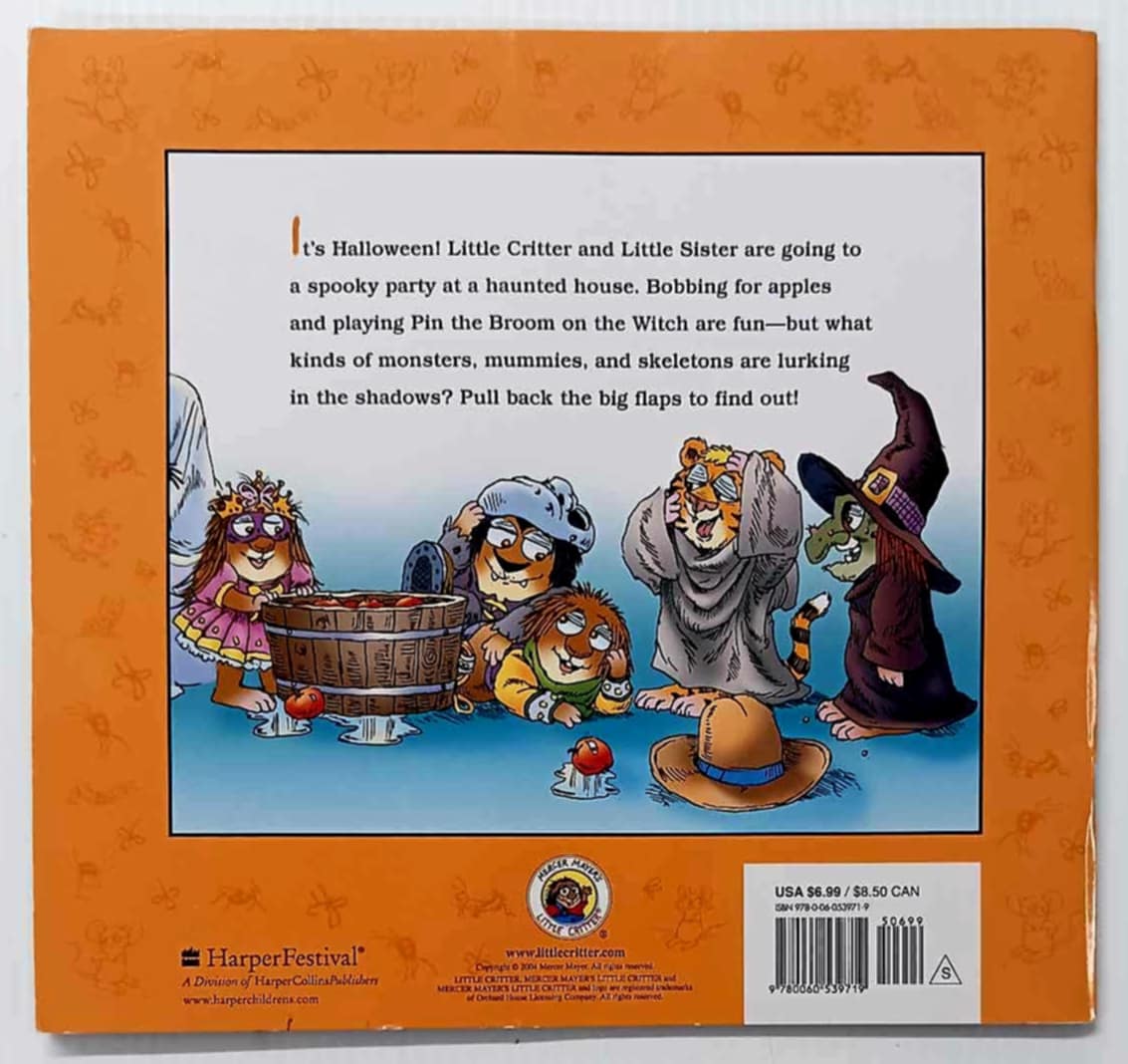 It's Halloween!  Little Critter and Little Sister are going to a spooky party at a haunted house.  Bobbing for apples and playing Pin the Broom on the Witch are fun, but what kinds of monsters, mummies, and skeletons are lurking in the shadows?