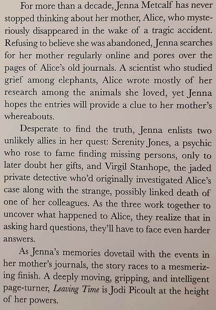 Leaving Time is at once the gripping story of a daughter searching for her missing mother, as well as one of Jodi Picoult's most powerful and affecting novels yet.