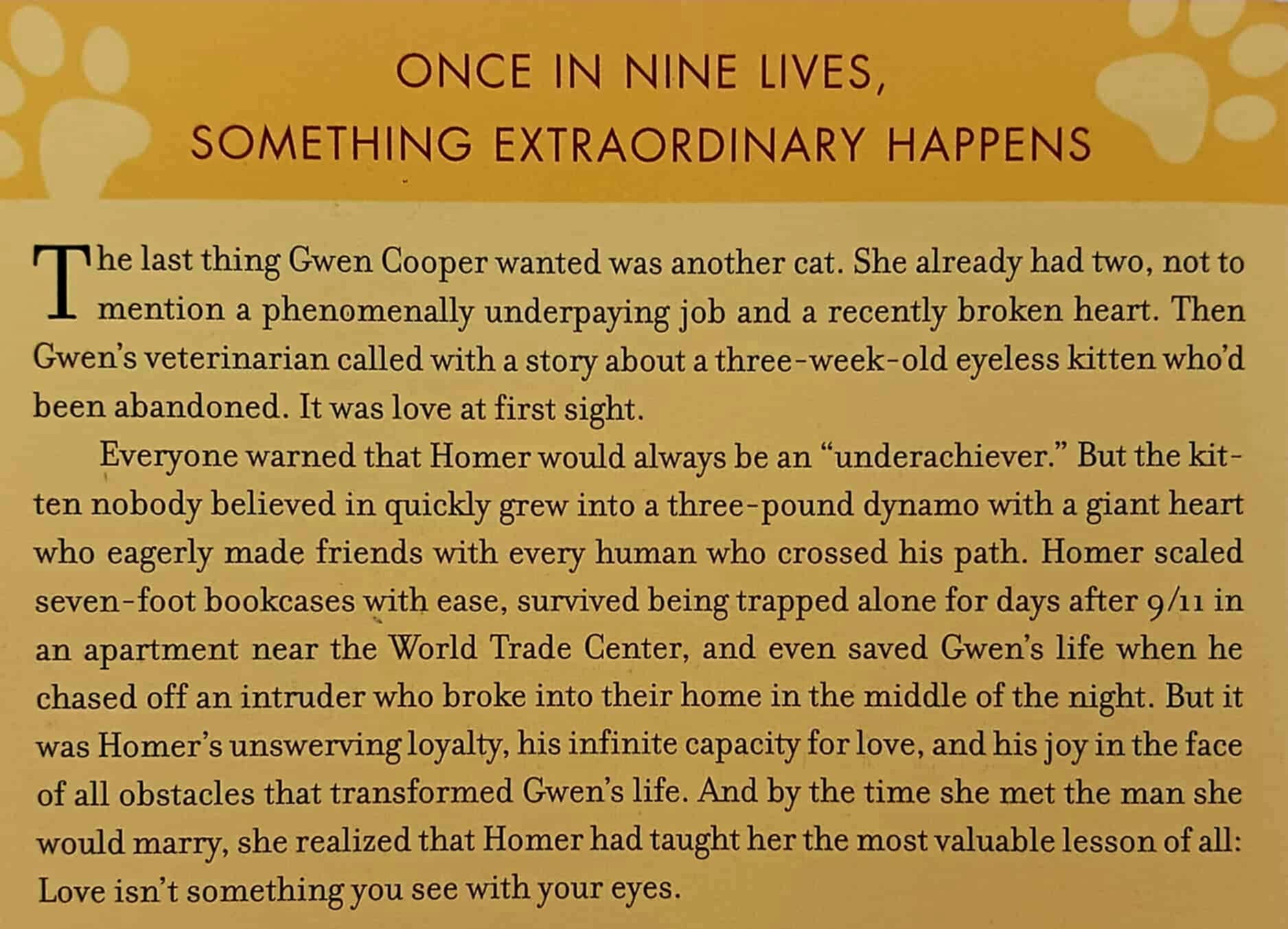 “Delightful! Homer's Odyssey is a lovely human-feline memoir that follows in the footsteps of Vicki Myron's Dewey: The Small-Town Library Cat Who Touched the World, and is sure to warm the hearts of all pet lovers.” -- Library Journal