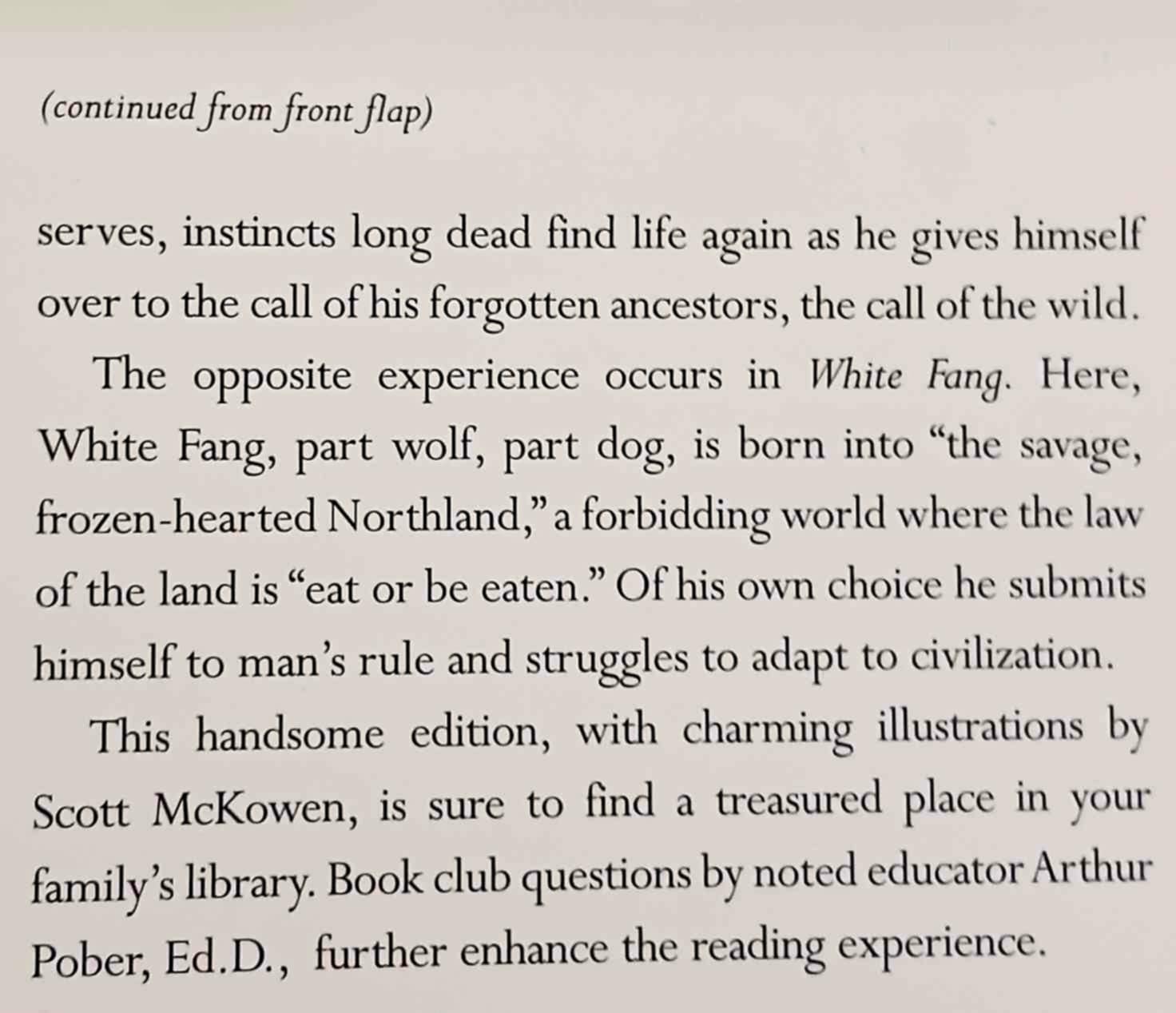 Jack London learned about dogs, wolves, and the wilderness while participating in the Klondike gold rush, and he then brought his knowledge and understanding to the writing of these two classic novels: The Call of the Wild and White Fang.