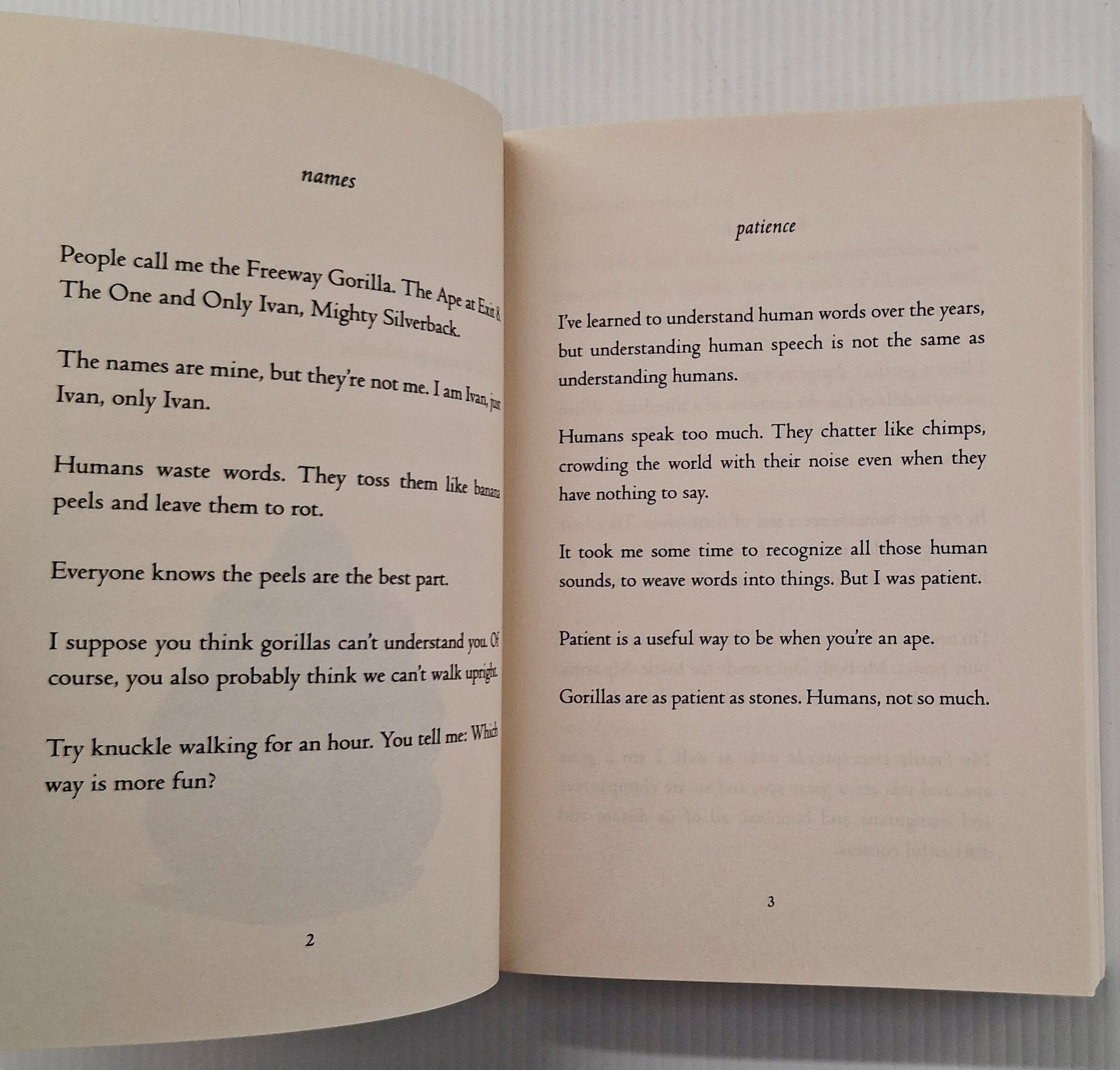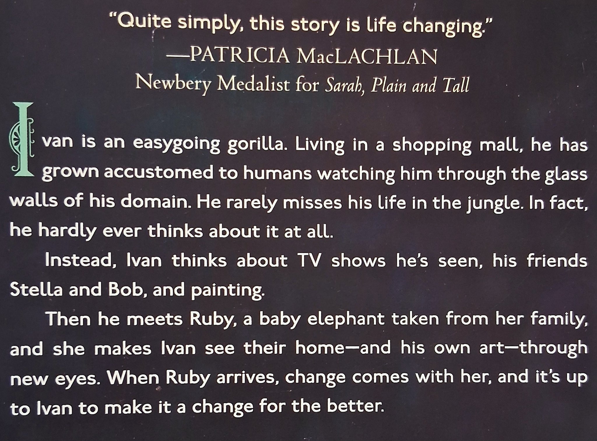 "The choice to tell this story in the first person and to personify the gorilla with an entire range of human thoughts, feelings, and emotions poses important questions to the reader, not only about what it means to be human but also about what it means to be a living creature, and what kind of kinship we all share." -- The Horn Book Magazine