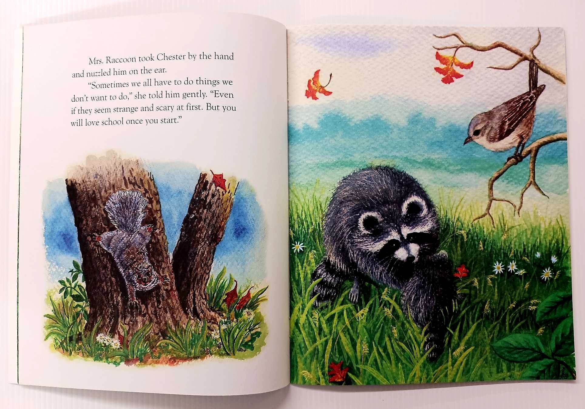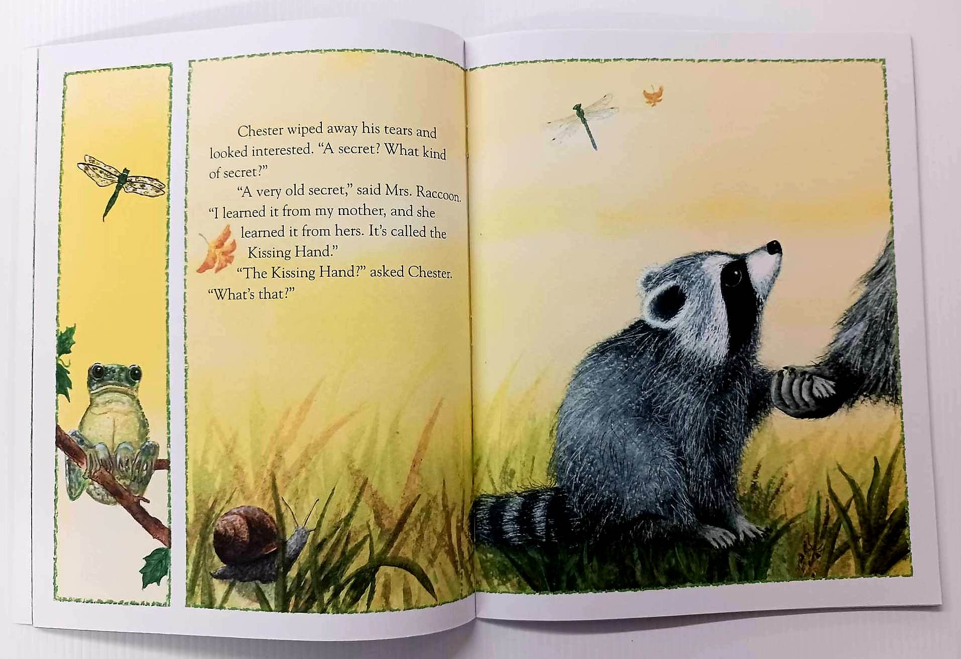 School is starting in the forest, but Chester Raccoon does not want to go. To help ease Chester's fears, Mrs. Raccoon shares a family secret called the 'Kissing Hand' to give him the reassurance of her love any time his world feels a little scary . . .
