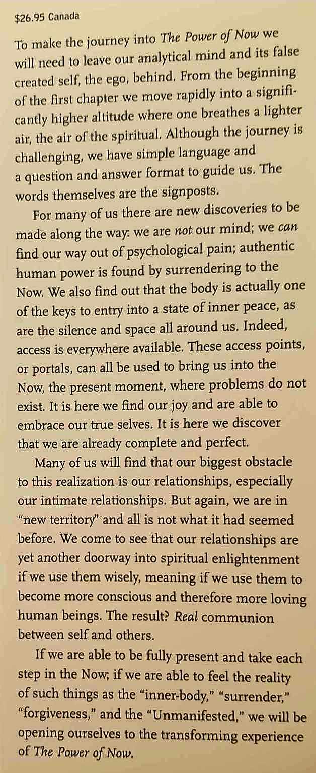 Much more than simple principles and platitudes, The Power of Now takes readers on an inspiring spiritual journey to find their true and deepest self and reach the ultimate in personal growth and spirituality: the discovery of truth and light.