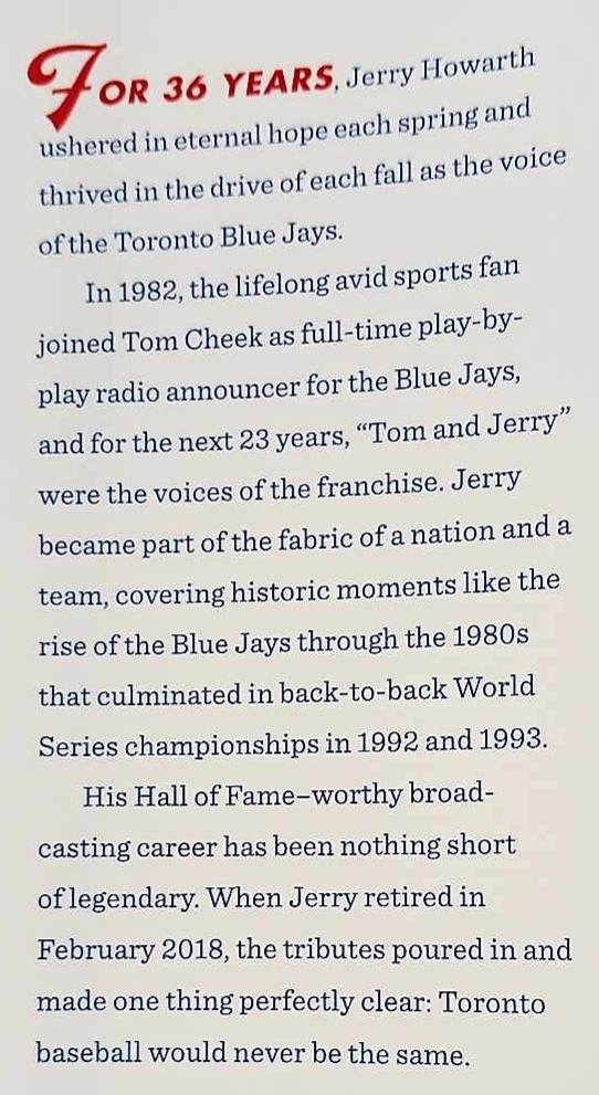 Discover the fascinating story of Jerry Howarth's life with Hello, Friends!, which recounts his early beginnings through the entirety of his career starting with his beginnings in radio, covering famous moments in Blue Jays history, and sharing intimate stories of his relationships with the players.