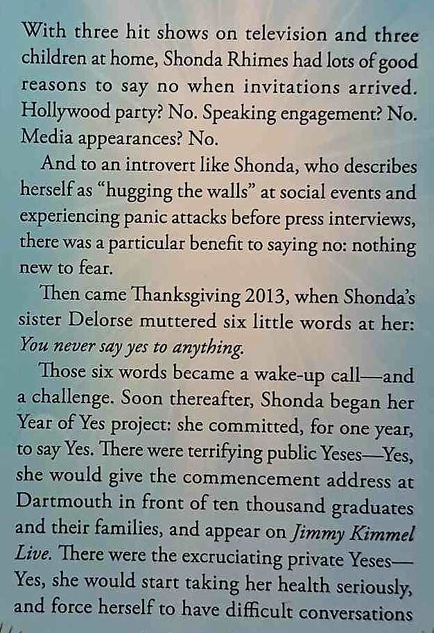 “Instead of writing passionate narratives for her TV characters, Rhimes adopted their pluck and bold attitudes and attacked life with a new sense of purpose. Who knew that such a small word could have such a life-changing impact?” -- Associated Press
