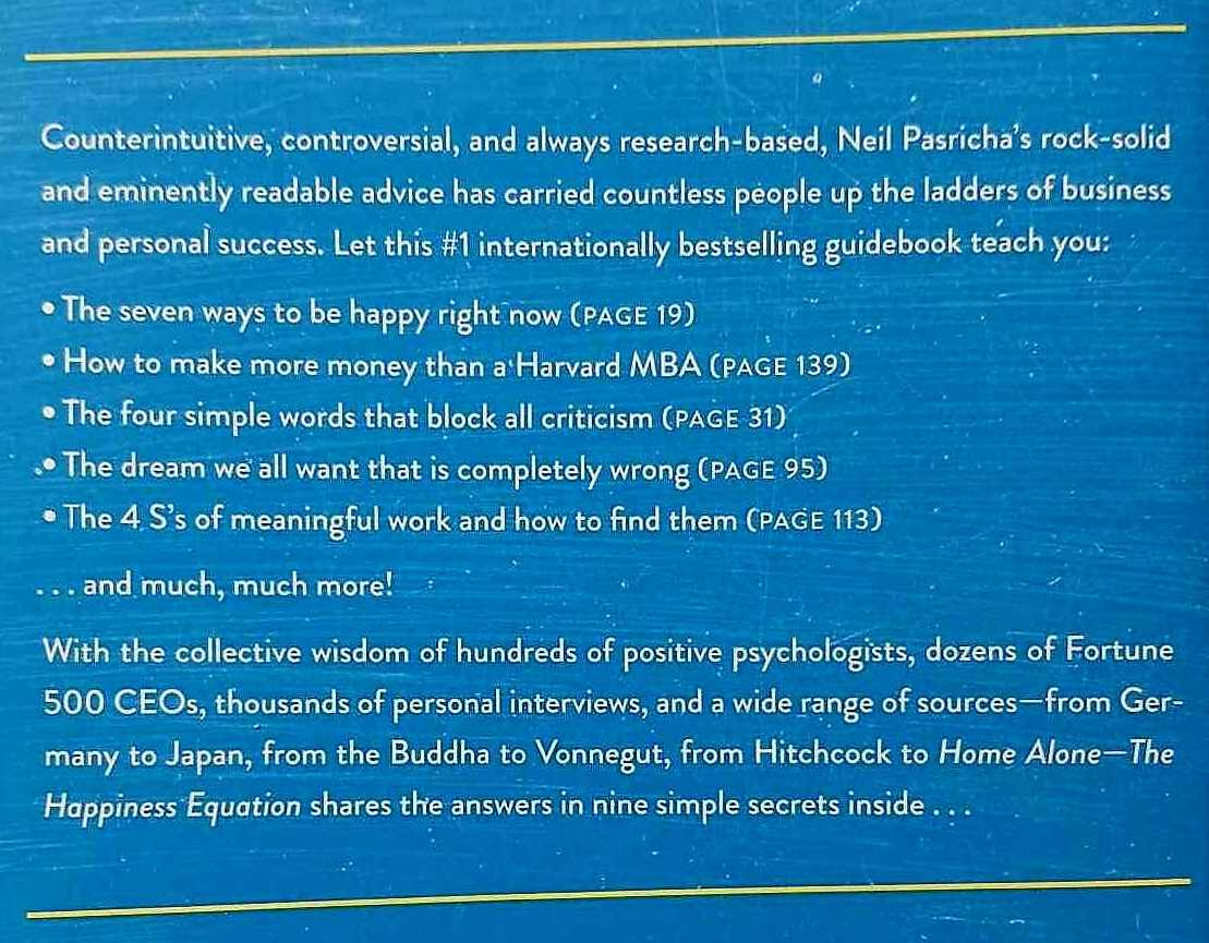 Illustrating how to want nothing and do anything in order to have everything, The Happiness Equation is a book that will change how you think about everything: your time, your career, your relationships, your family, and, ultimately, of course, your happiness!