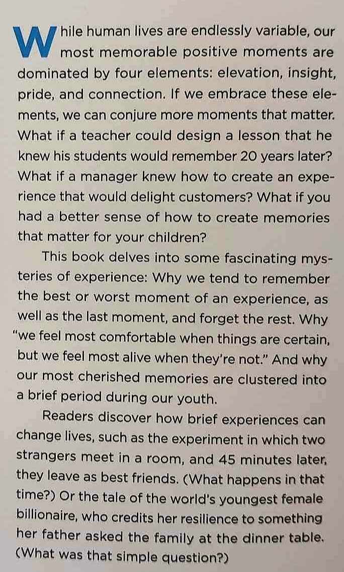 The Power of Moments: Why Certain Experiences Have Extraordinary Impact