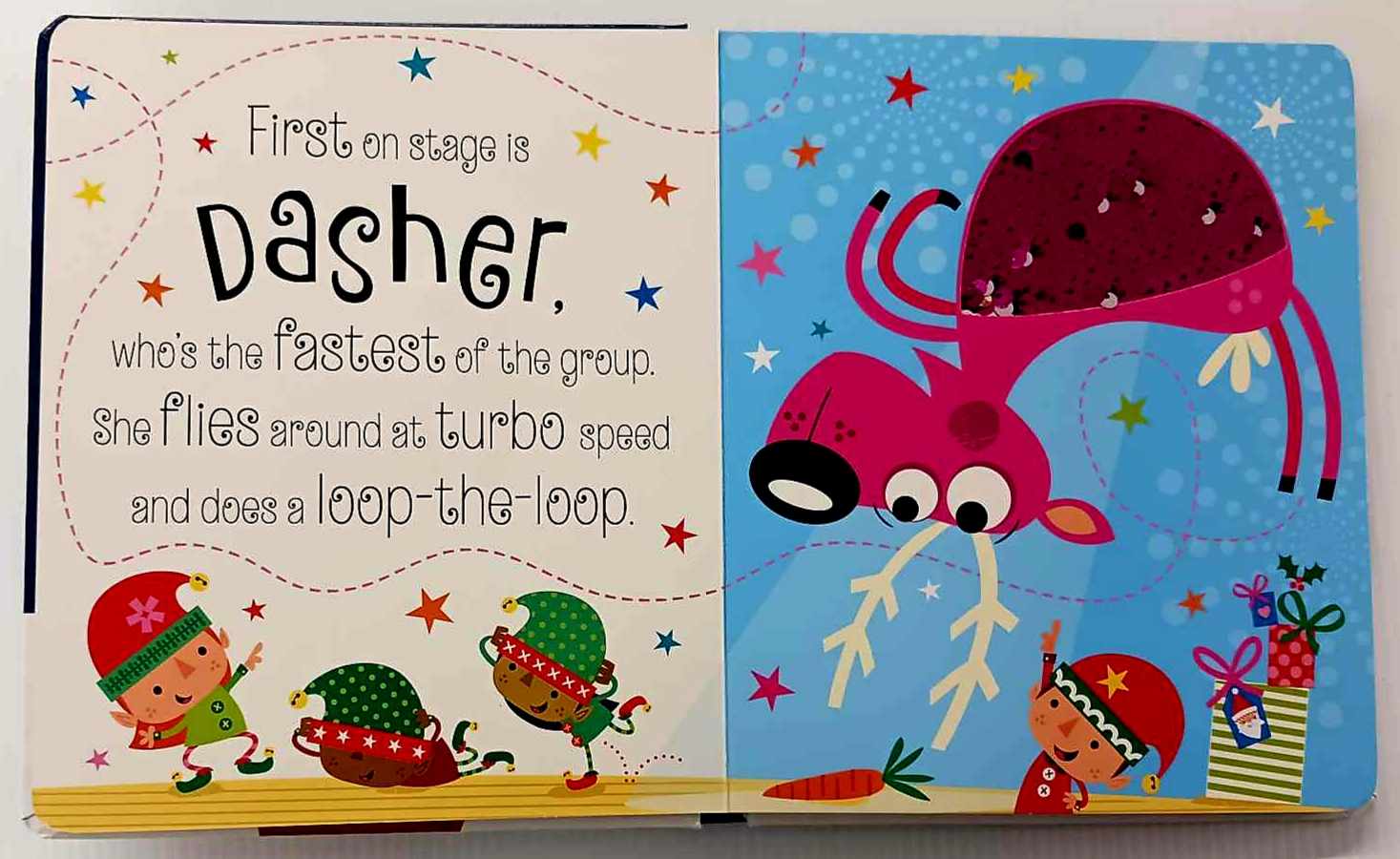 Join Santa and his sleigh squad in Reindeer of the Year, a hilarious story that pairs rhyming text and special two-way sequins included on every spread to create an interactive tale that allows young readers to get involved in the festive (and sparkly) showdown.