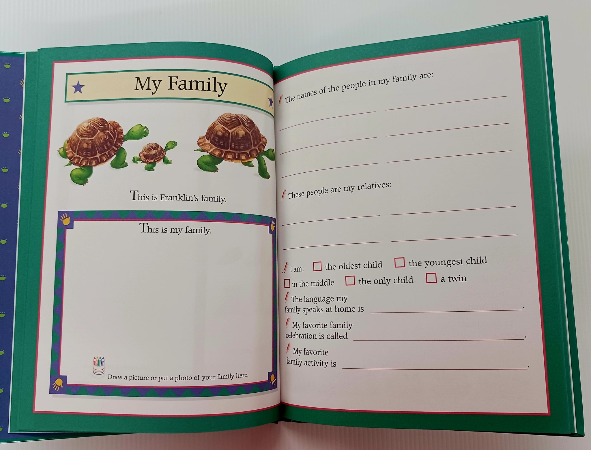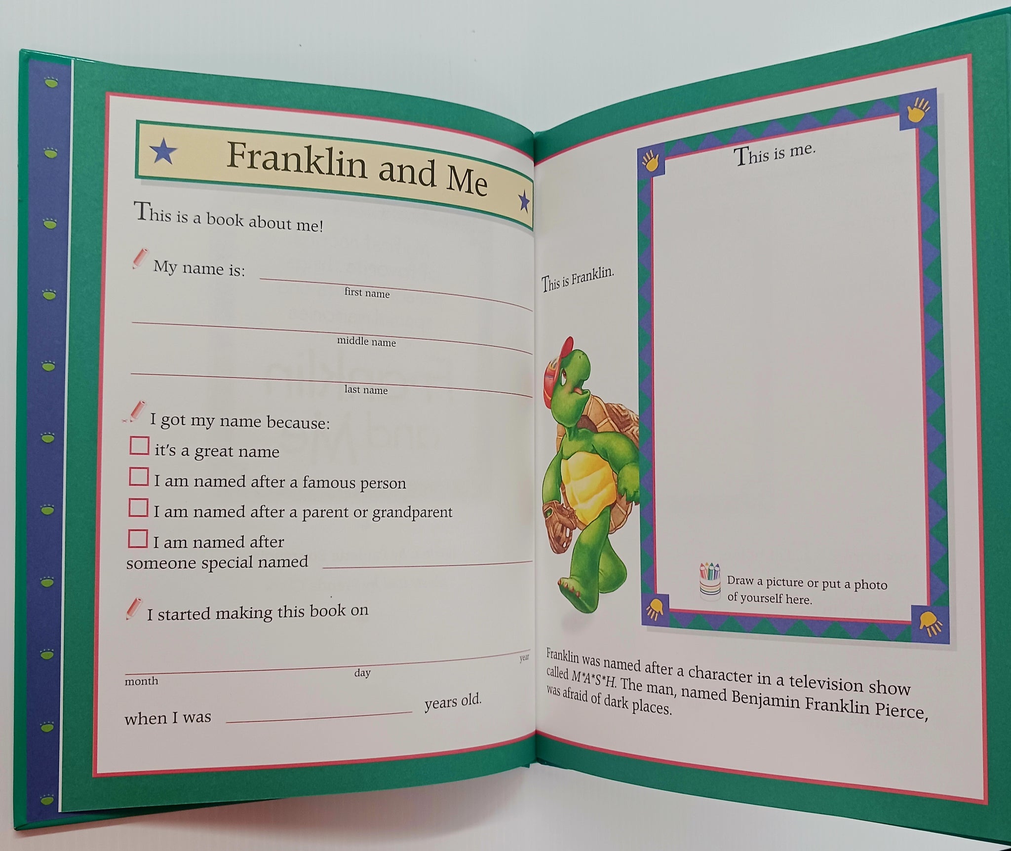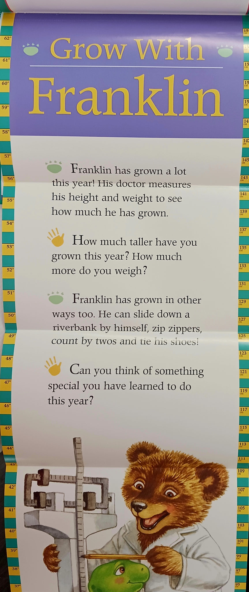 Now he has a special place to write everything down and he's left room for a friend. With Franklin and Me, an extensive memory book that allows children to write, draw, and record everything about themselves in their own special keepsake album, which also includes a pull-out growth chart to record even more milestones.