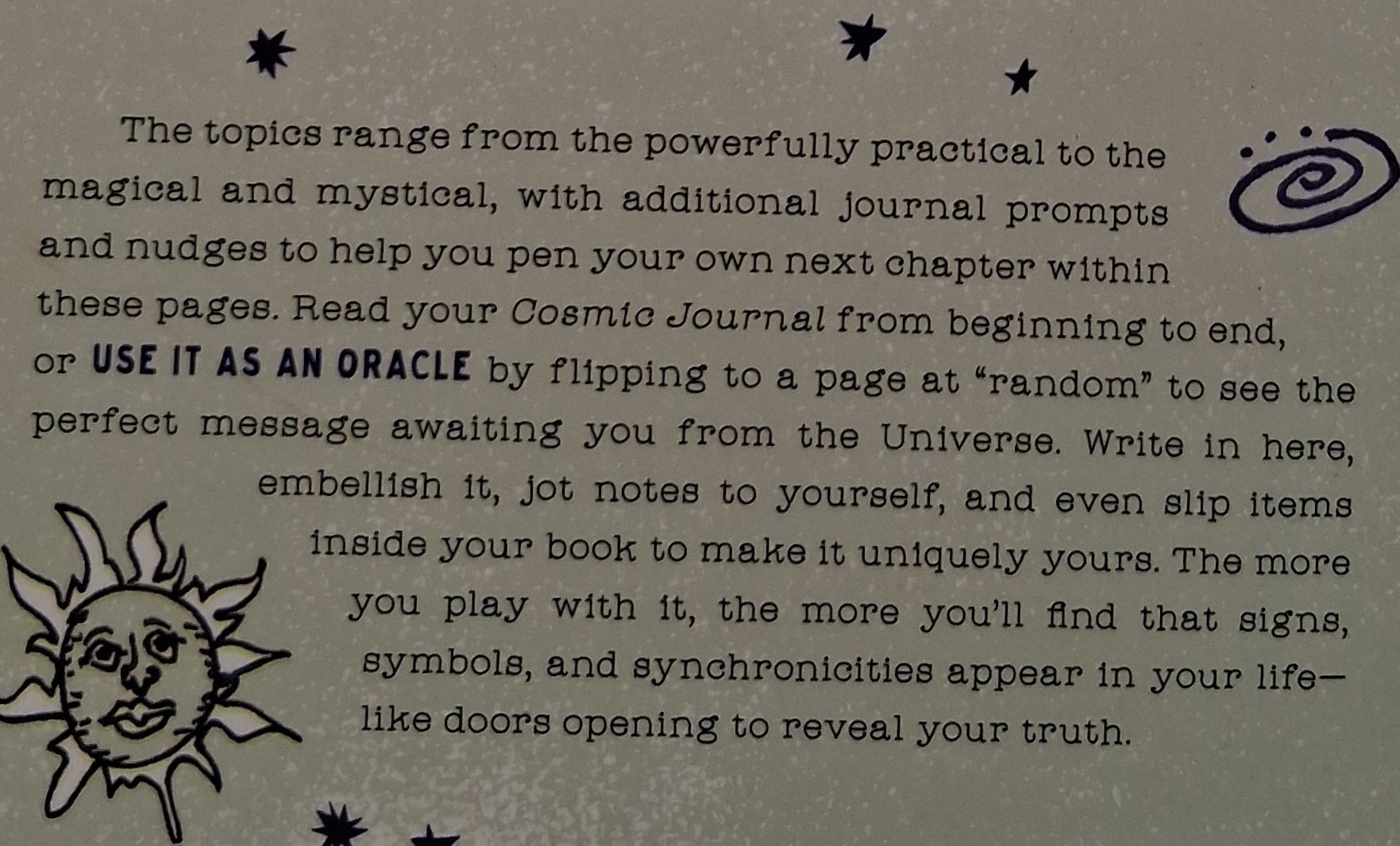 A weird and wonderful little book, The Cosmic Journal uniquely combines a powerful oracle, wise sage, and friendly guide to dispense deep wisdom, meaningful messages, and a tiny bit of magic to help unlock the doors of inner truth.