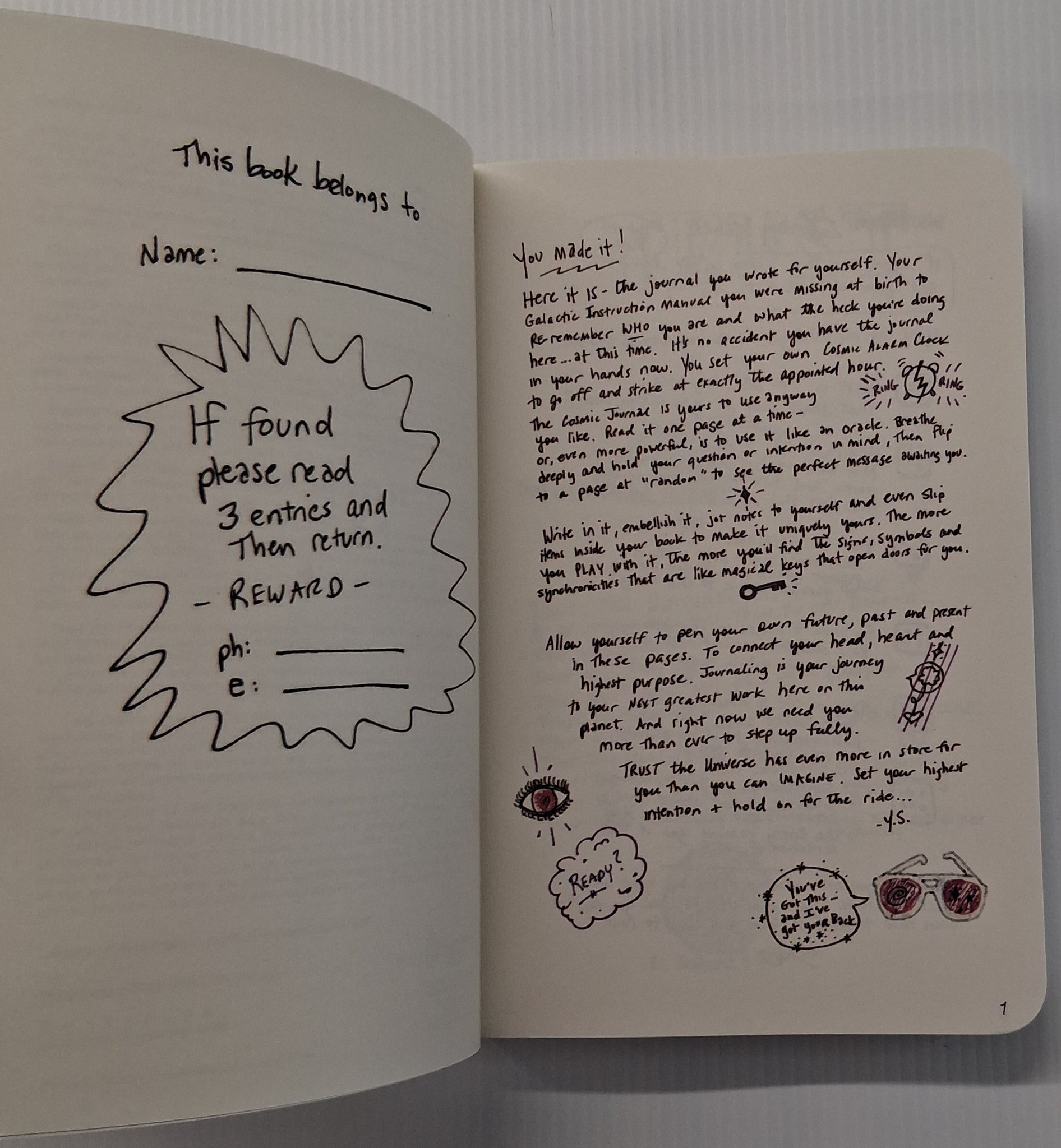 Whimsically illustrated and completely hand-lettered, The Cosmic Journal is one that intersperses wise messages on purpose, destiny, the universe, and building an evolved business with engaging writing prompts and fun exercises designed to inspire and motivate its readers on the path toward achieving their dreams.