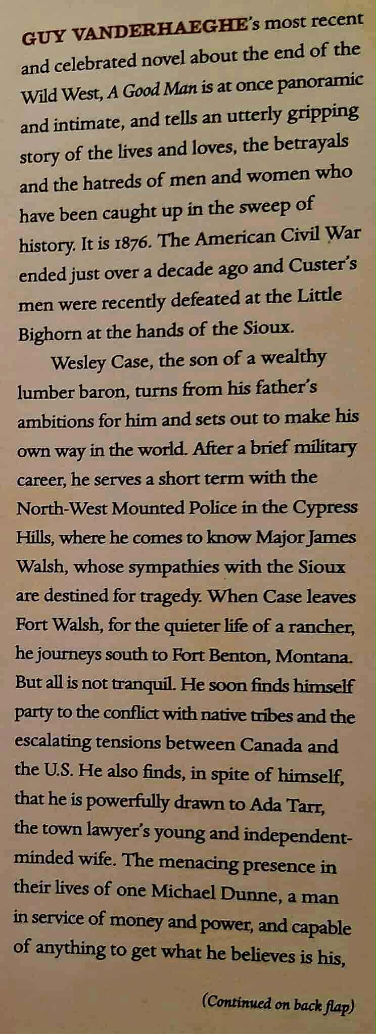 Vanderhaeghe skillfully weaves a rich tapestry of history, intrigue, turns of fortune, vividly drawn characters, and questions of morality in A Good Man, a historical fiction novel set during the Civil War period in the late nineteenth-century Canadian and American West.
