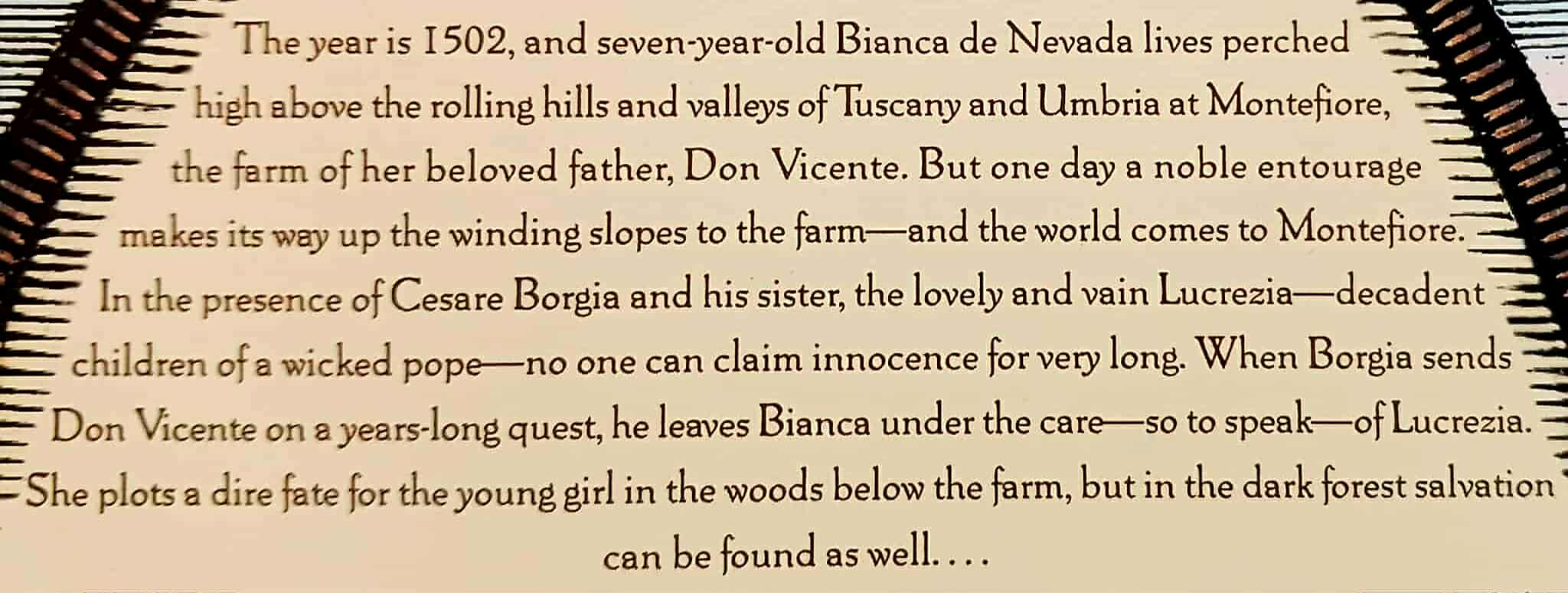 The year is 1502, and seven-year-old Bianca de Nevada lives perched high above the rolling hills and valleys of Tuscany and Umbria at Montefiore, the farm of her beloved father, Don Vicente. Until, one day, a noble entourage arrives at the farm . . .