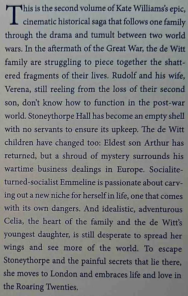 An utterly spellbinding tale of 1920s London and Paris, The Edge of the Fall brims with intrigue and emotion while balancing the glamour of the era with the gritty reality of life in a world changed forever for war . . .