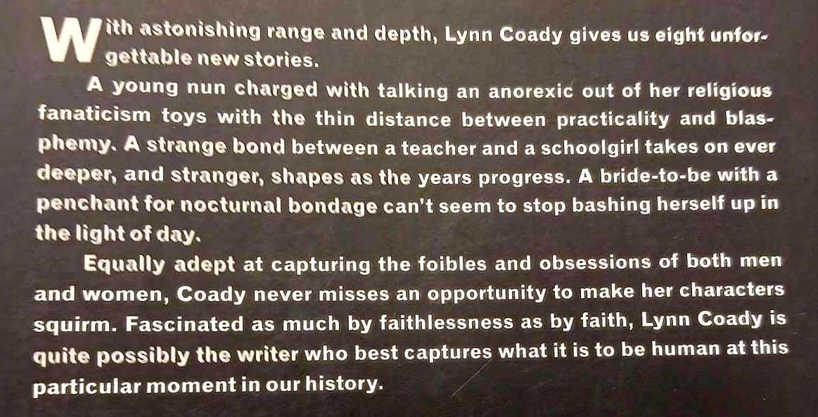 Equally adept at capturing the foibles and obsessions of men and of women, compassionate in her humour yet never missing an opportunity to make her characters squirm, fascinated as much by faithlessness as by faith, Lynn Coady is quite possibly the writer who best captures what it is to be human at this particular moment in our history.