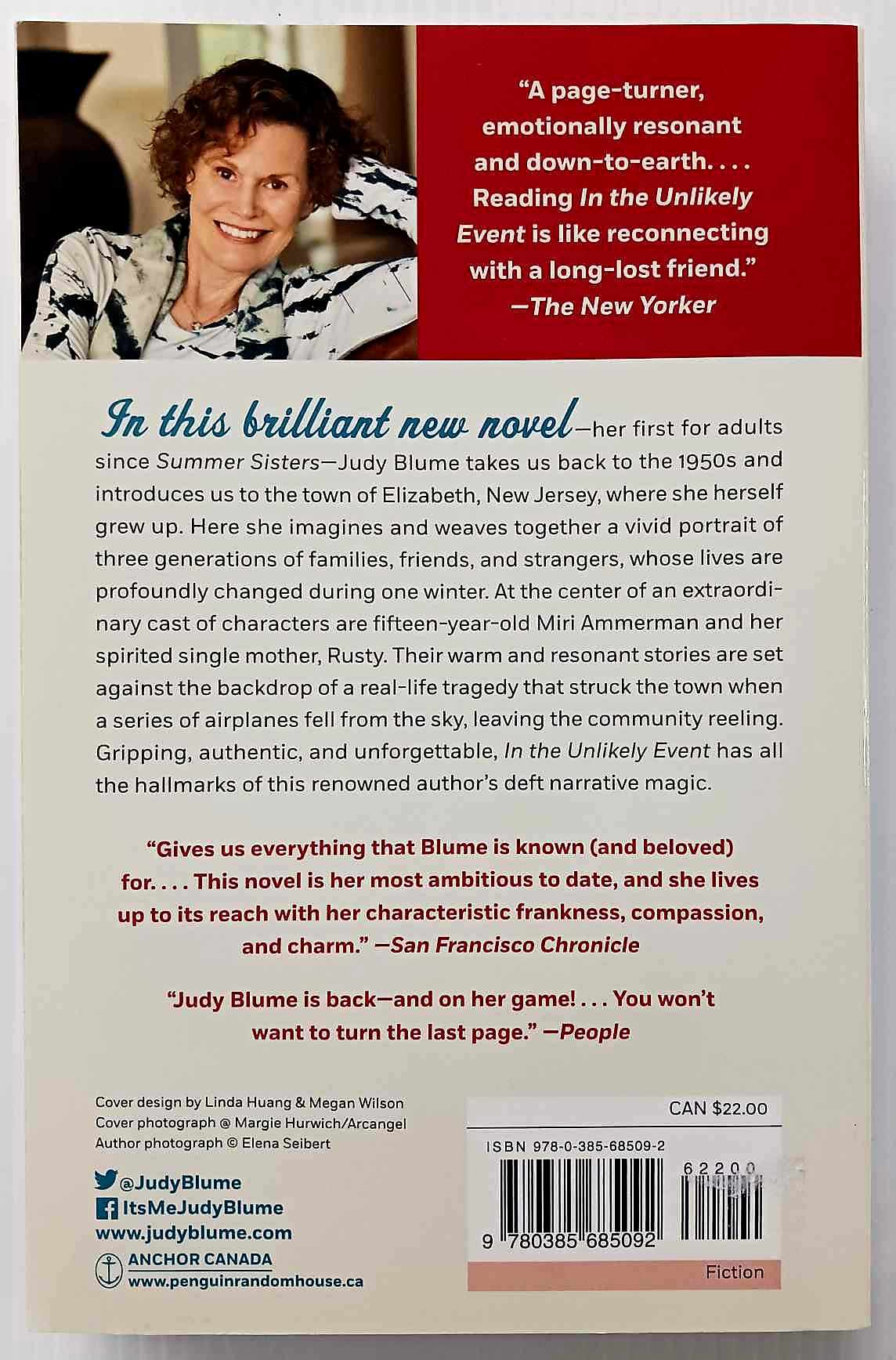 "As she always has, Blume proved that she knows best; each of these stories needed to be told.  The beauty of In the Unlikely Event lies in the way it shows how communities are affected by tragedy and fear not just as a whole, but also as individuals." -- The Globe and Mail