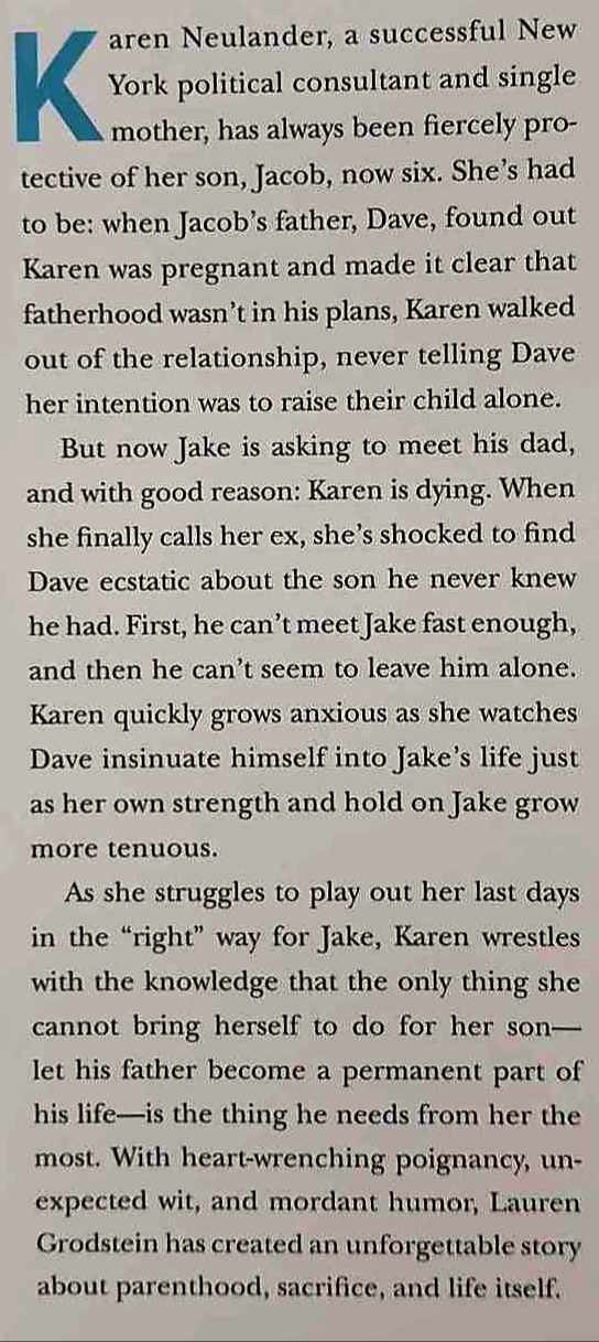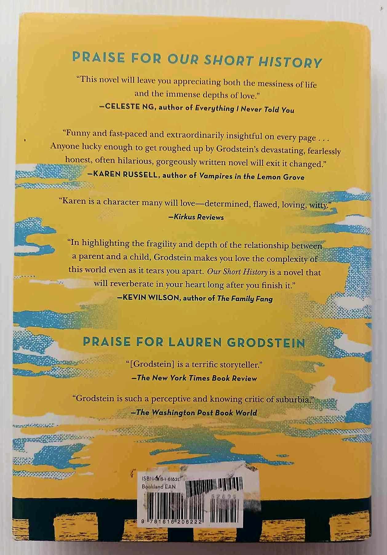 “In Our Short History, Lauren Grodstein breaks your heart, then miraculously pieces it back together so it’s bigger (and stronger) than before.  This novel will leave you appreciating both the messiness of life and the immense depths of love. -- Celeste Ng, author of Everything I Never Told You, Little Fires Everywhere, and Our Missing Hearts