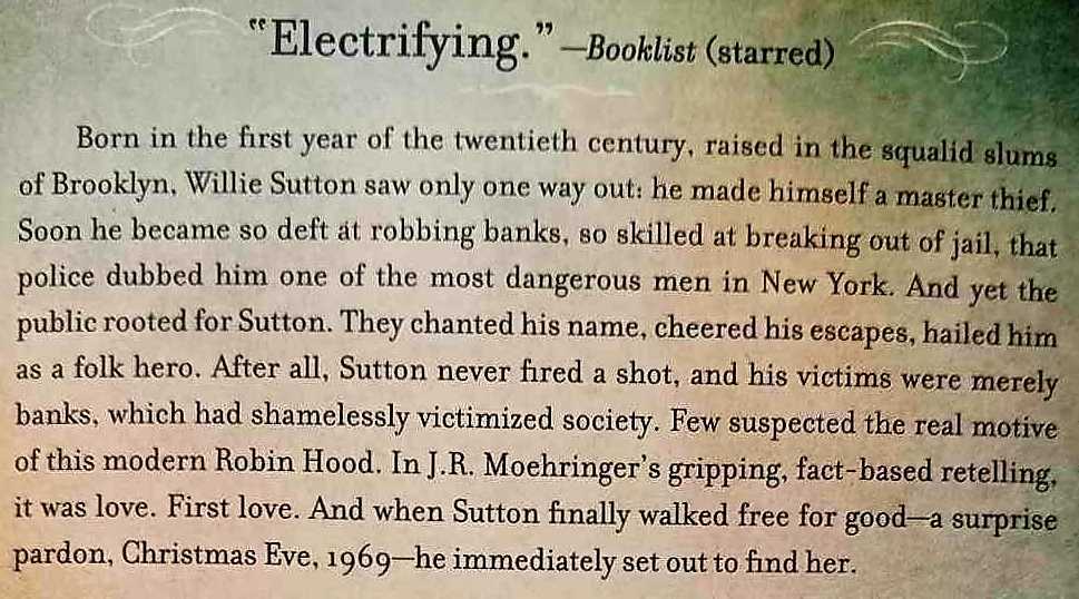 "What Hilary Mantel did for Thomas Cromwell and Paula McLain for Hadley Hemingway, Moehringer does for bank robber Willie Sutton in this fascinating biographical novel of America's most successful bank robber." -- Newsday