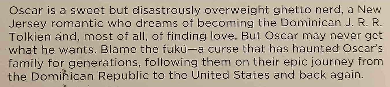 Things have never been easy for Oscar, a sweet but disastrously overweight, lovesick Dominican ghetto nerd who dreams of becoming the next J.R.R. Tolkien, but most of all, of finding love . . .