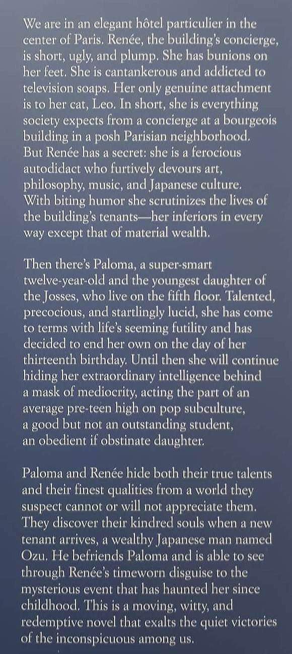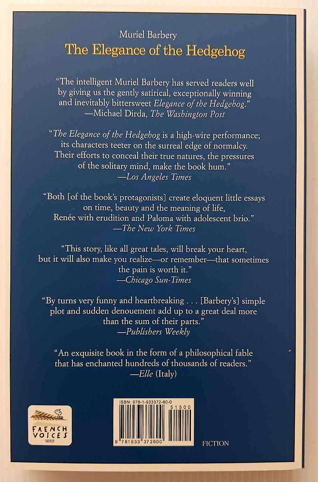 Beautiful for its underlying truths that we are all worthy of love, and love will surely be given if we just believe that we are worthy, The Elegance of the Hedgehog is a moving, funny, triumphant novel that exalts the quiet victories of the inconspicuous among us.