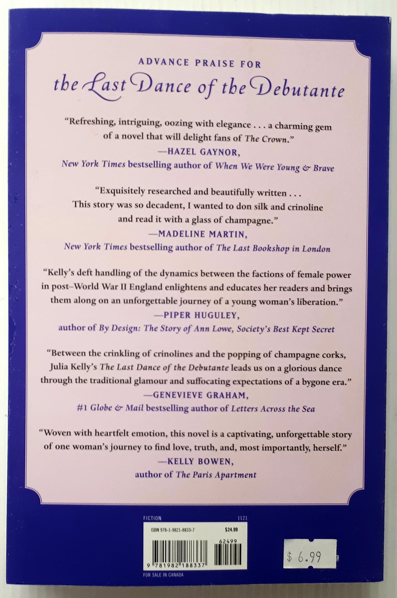 “Between the crinkling of crinolines and the popping of champagne corks, Julia Kelly’s Last Dance of the Debutante leads us on a glorious dance through the traditional glamour and suffocating expectations of a bygone era.” -- Genevieve Graham, bestselling author of Letters Across the Sea, The Forgotten Home Child, and Bluebird