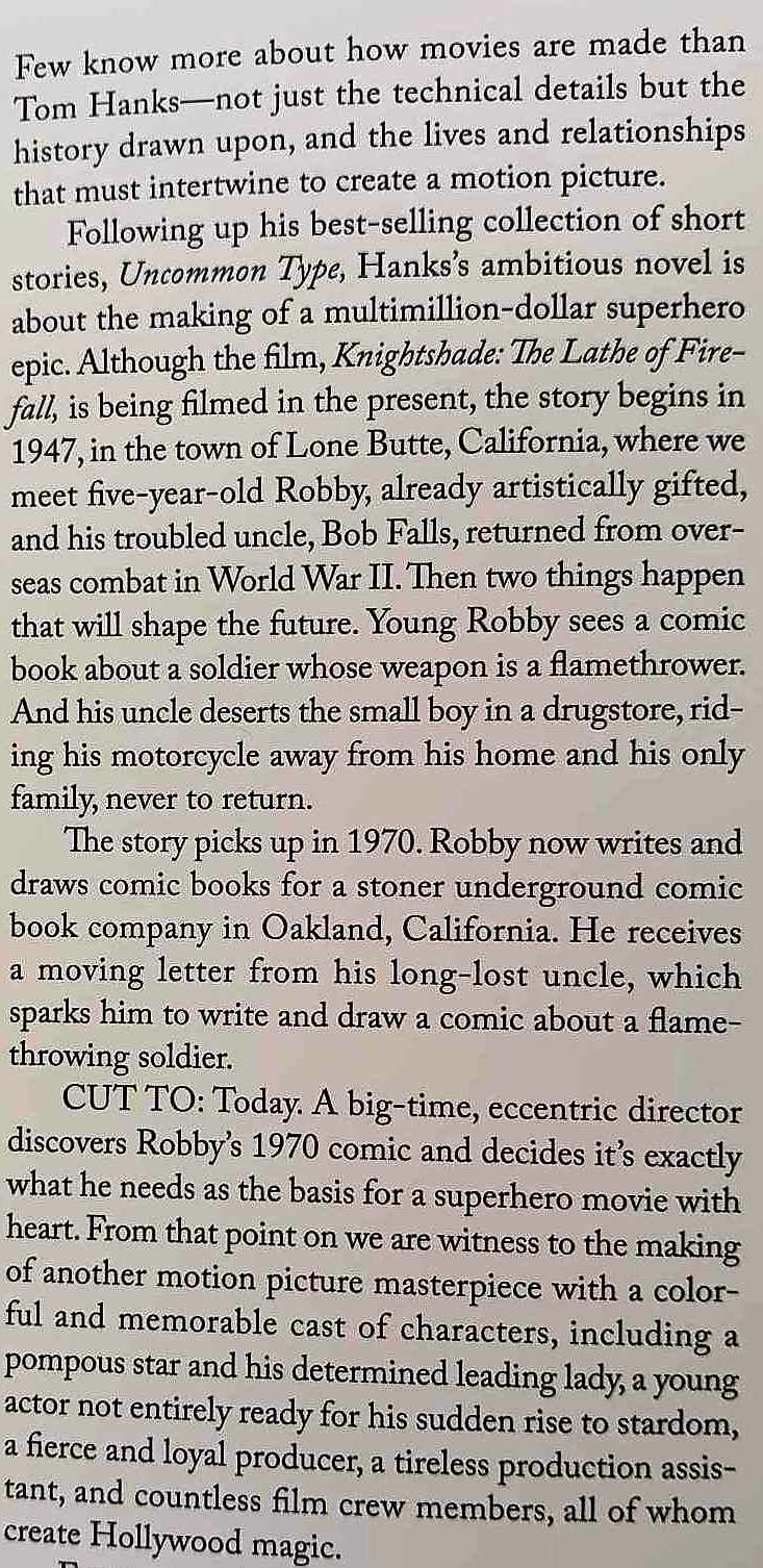 A new novel from bestselling author and Academy Award-winning actor Tom Hanks, The Making of Another Major Motion Picture Masterpiece is about the making of a star-studded, multimillion-dollar superhero action film, and the humble comic books that inspired it . . .