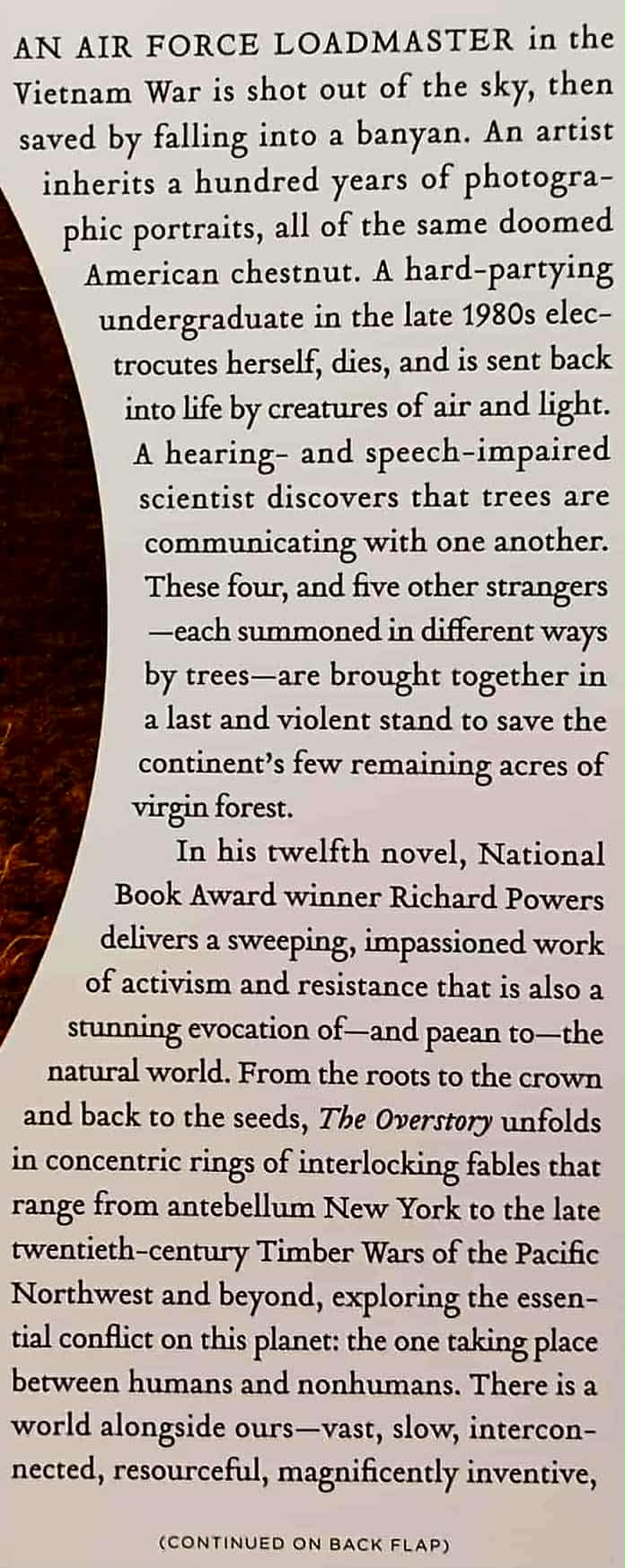A sweeping, impassioned work of activism and resistance, The Overstory is a monumental novel that reimagines our place in the living world as it unfolds in concentric rings of interlocking fable that range from antebellum New York to the late twentieth-century Timber Wars of the Pacific Northwest and beyond.