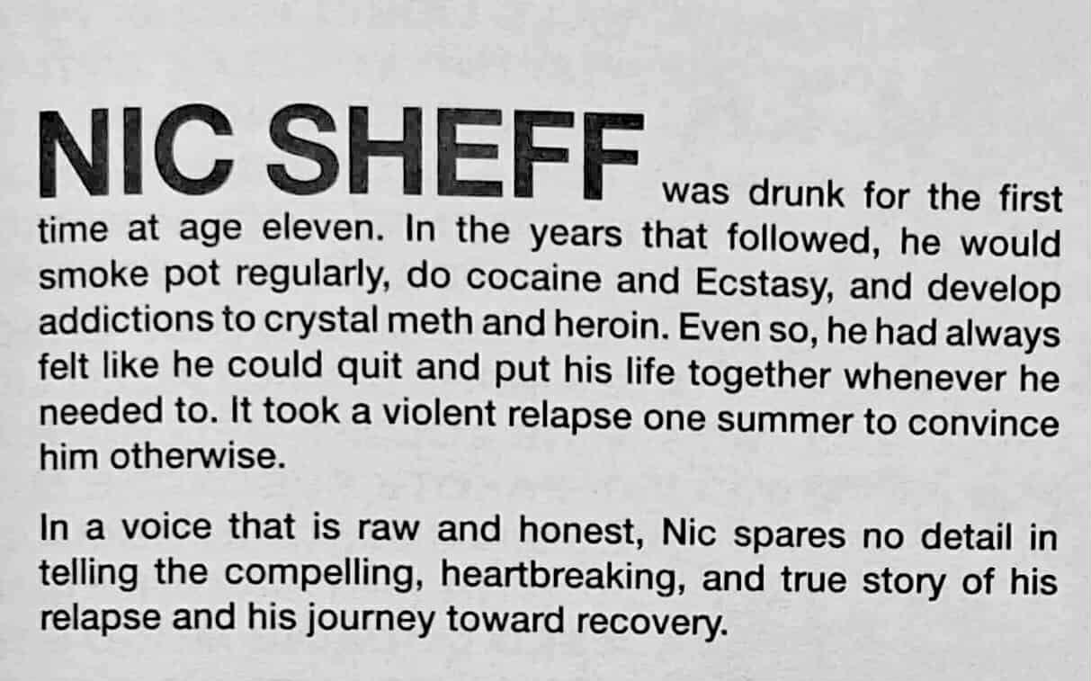 Recovering drug addict and alcoholic Nic Sheff tells the raw, at times distressing, and ultimately hopeful tale of the road from relapse to recovery . . .