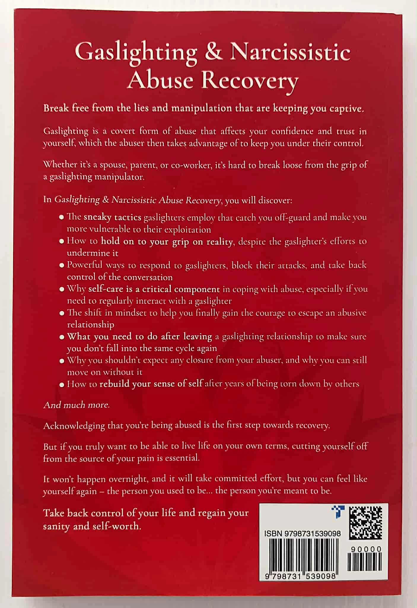 Acknowledging and recognizing this form of abuse is the first step towards recovery, Gaslighting & Narcissistic Abuse Recovery teaches how to protect oneself, take back control of one's life, and regain your sanity, self-worth, and future.