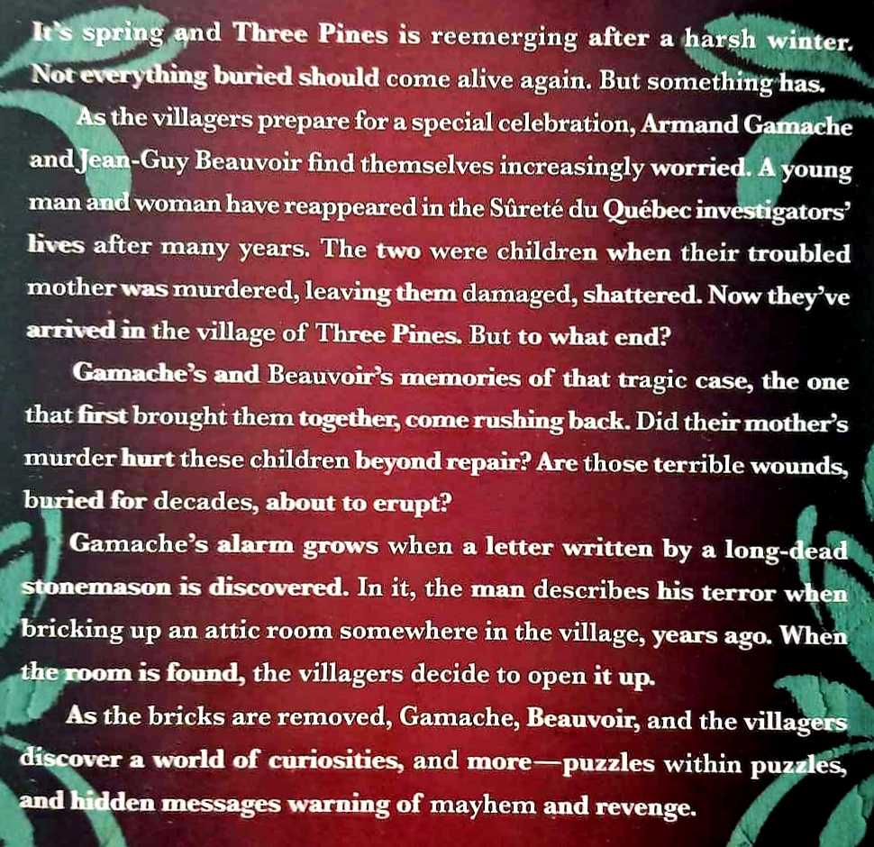 It’s spring and Three Pines is reemerging after the harsh winter, but not everything buried should come alive again. Not everything lying dormant should reemerge, but something has . . .