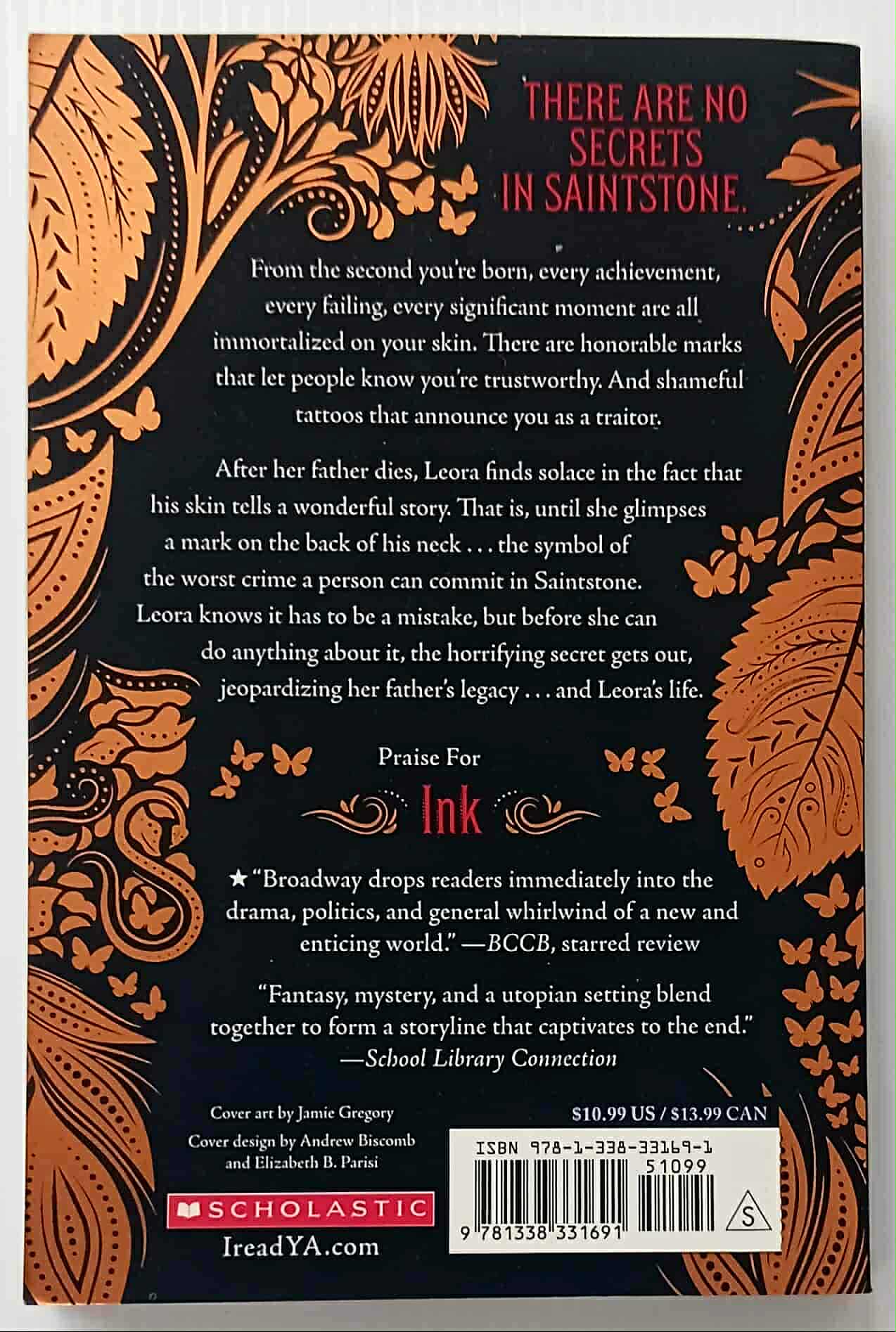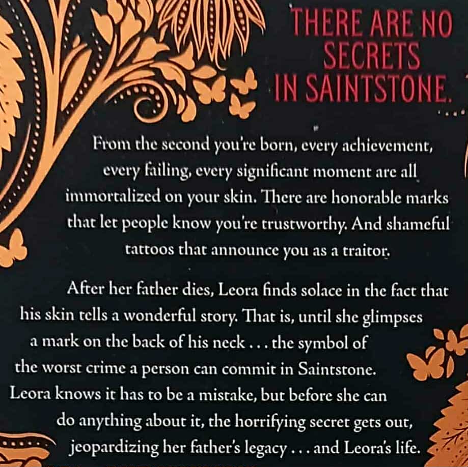 There are no secrets in Saintstone.  From the second a person is born, every achievement, failing, and significant moment is immortalized on their skin.  There are honorable marks that let people know you're trustworthy, and shameful tattoos that announce you as a traitor . . .