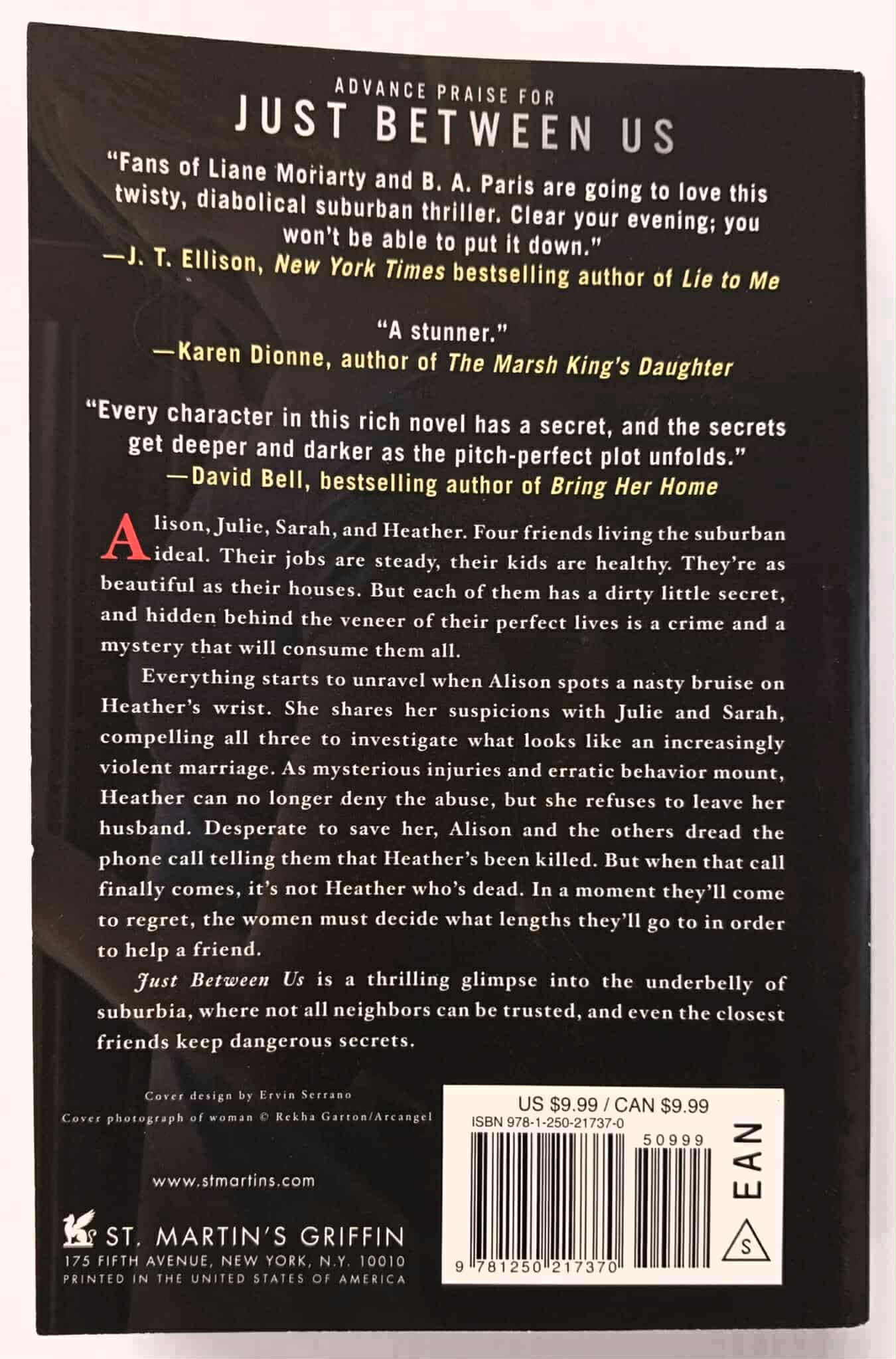 A thrilling glimpse into the underbelly of suburbia, where not all neighbors can be trusted, and even the closest friends keep dangerous secrets, Just Between Us shows how one never knows what is really going on in another person's mind, or in their marriage.