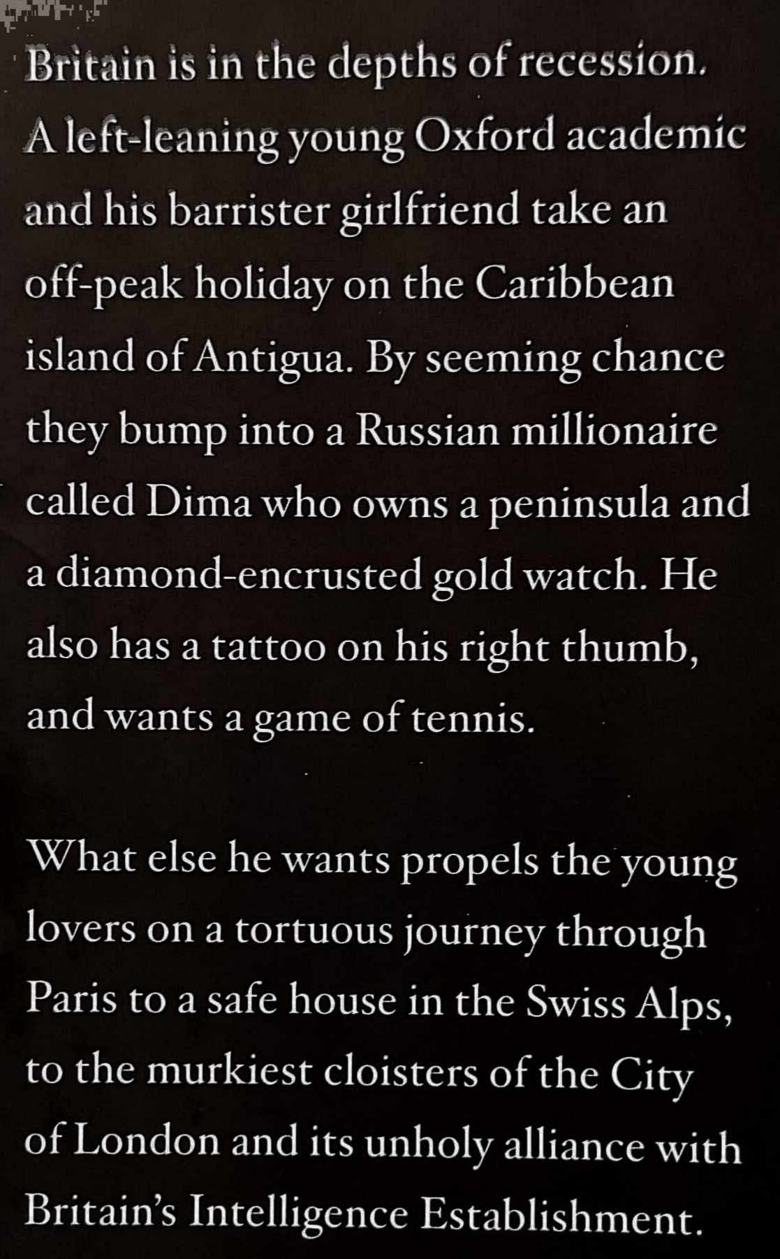Perry and Gail are idealistic and very much in love when they splurge on a tennis vacation at a posh beach resort in Antigua, but the charm begins to pall when a big-time Russian money launderer enlists their help to defect . . .